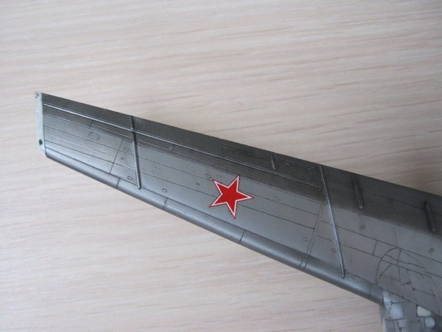 Владимир я очень рад что Вам понравилось моё творение. Ну а по поводу косяков, что есто то есть. Шасси когда на сухую прикидывал вроде нормально было, а как на клей поставил правая тележка чут поднялась. Теперь по колесам. Это не краска просто просто попытался сделать следы пыли на колесах – AK Interaktive, да чуток перестарался. Размер у модели такой в длину 31 см, размах крыла 35 см. С уважением Сергей.