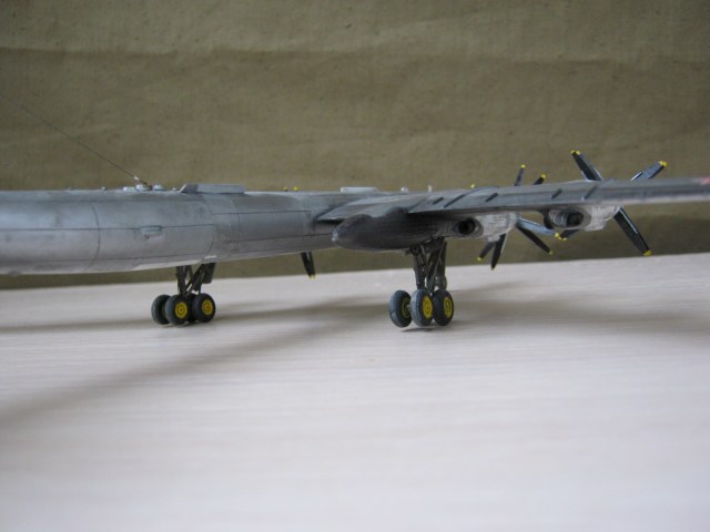 Ну и агрегат!Он даже в модели вызывает трепет!Мощь!Сергей,модель вроде неплохая,и фото хороши,но пару не приятных моментов я обнаружил.Колеса шасси замазаны серой краской,пара щелей в местах стыка деталей,ну и конечно повисшие в воздухе задние колеса.Скажите а какой размер у модели?С уважением!
