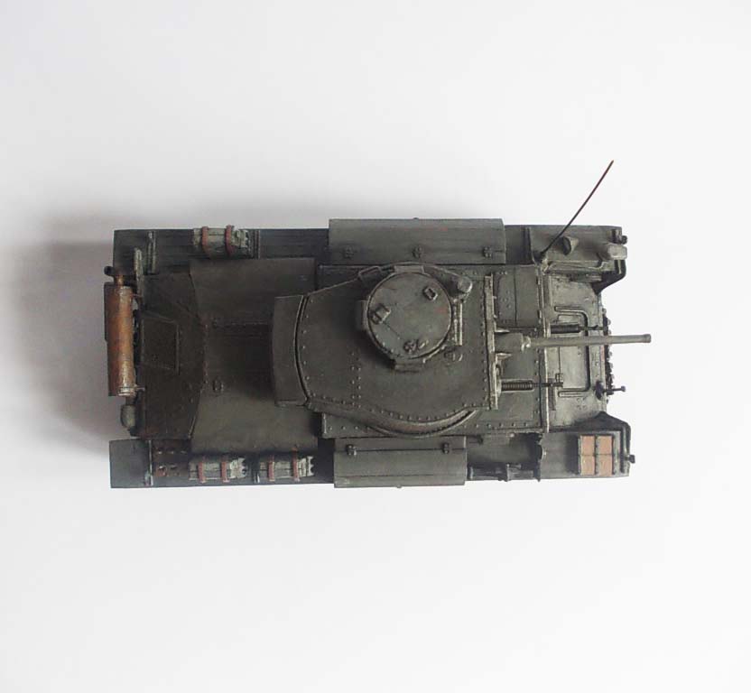 Хорошо смотрится.Не увидел ничего страшного в траках.Да и одеты они правильно.Очень не хватает заптраков, спереди.Ну или хотя бы креплений для них.Крышки ступицы ,или как её назвать? на звёздах нет.Всё равно- хорош танк.
