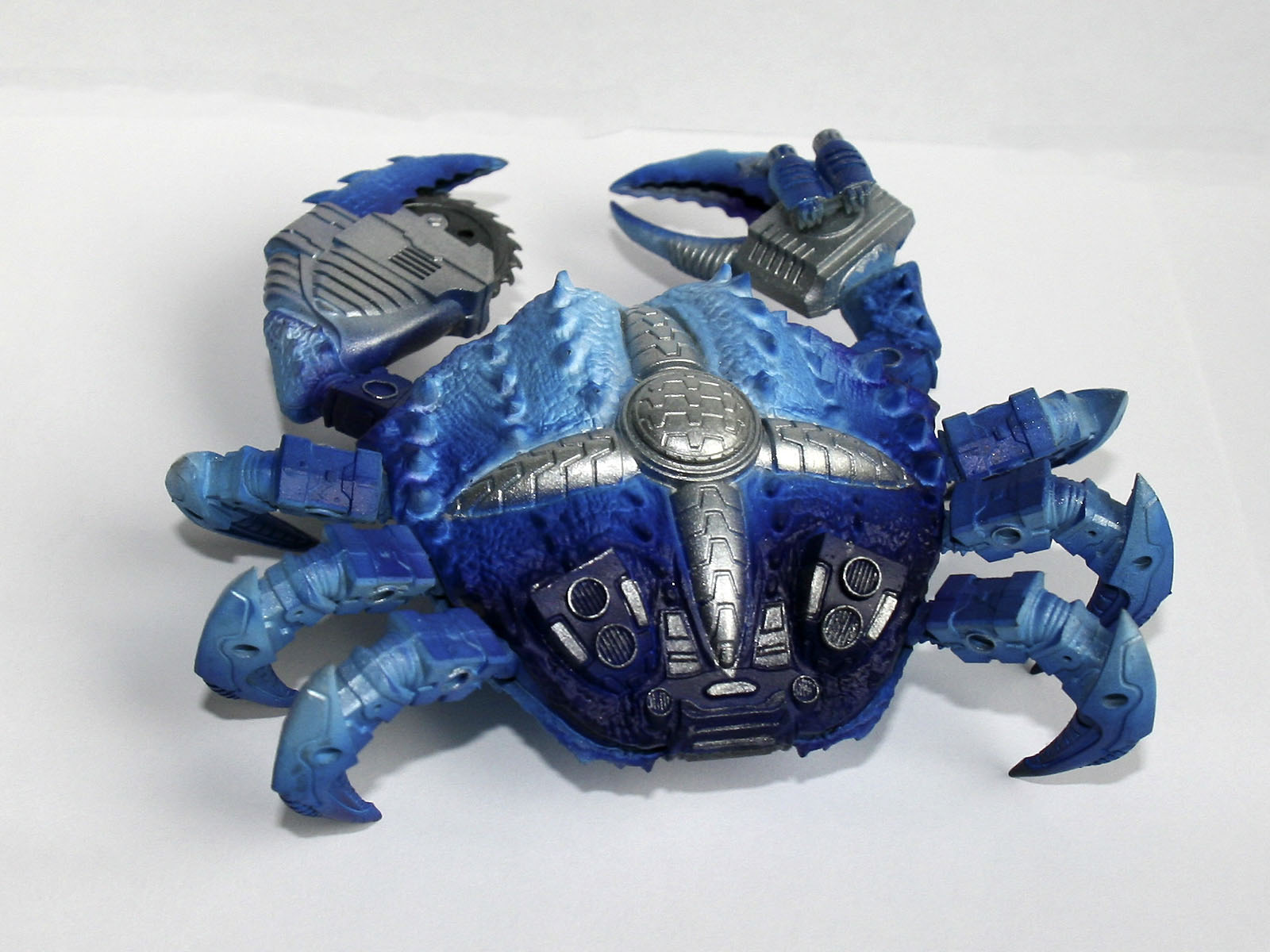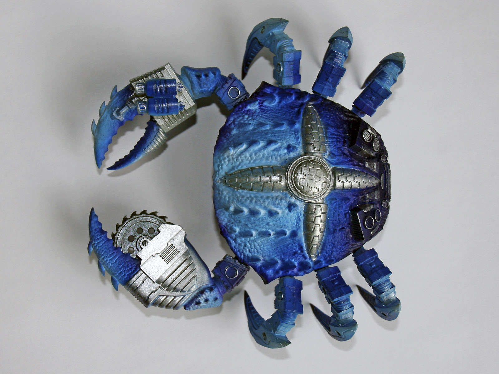 Боевая биомашина из варгейма "Звездный десант" представляет собой огромного генномодифицированного краба, нечувствительного к боли, не нуждающегося в отдыхе и питании (в связи с этим лично у меня вопрос: КУДА именно бедному животному вживили атомные батарейки? :)). Все органы боевой машины заменены биологическими агрегатами и в случае повреждения могут быть заменены в кратчайшие сроки. Крохотный мозг чудовища удален за ненадобностью, а на его месте установлен мощный биопроцессор, в котором запрограммированы самые подходящие для ведения войны охотничьи и боевые инстинкты.