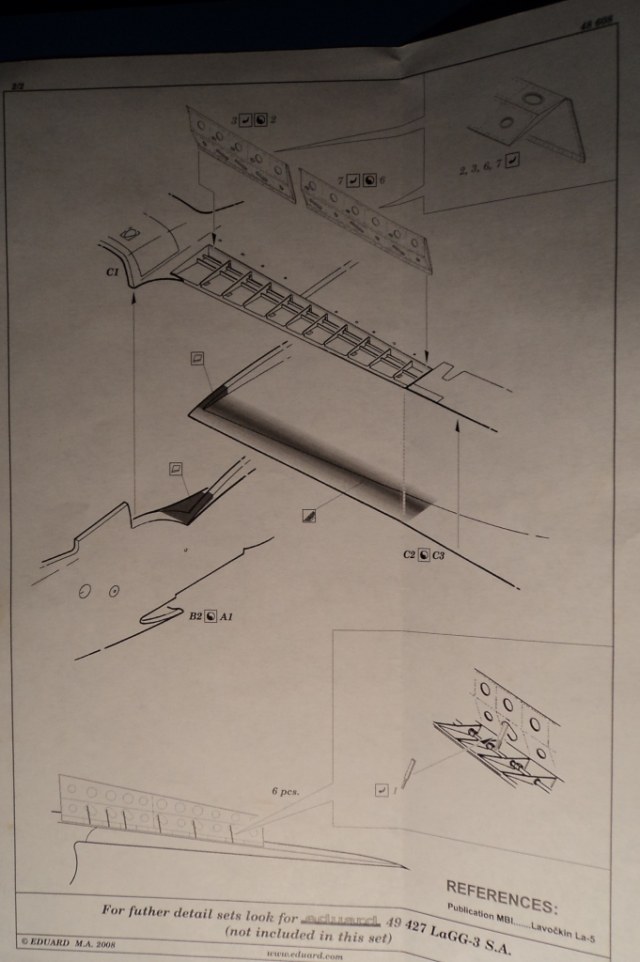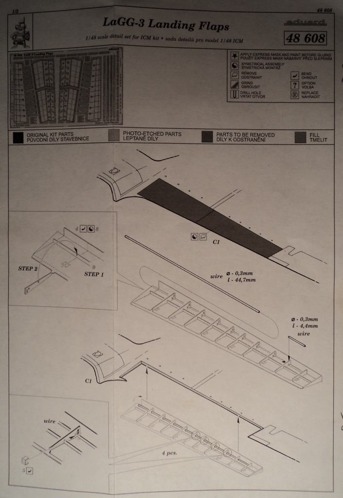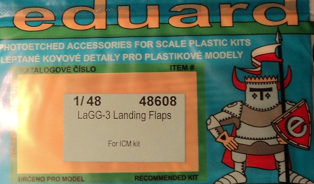 На сей раз это закрылки для самолета ЛаГГ-3 фирмы ICM. Вообще, закрылки были едины от ЛаГГ-3 до Ла-7, но как нам известно, набор украинской фирмы грешит масштабом (примерно 1/50), поэтому закрылки на ЛаГГ-3 эдуард выпустил отдельно.