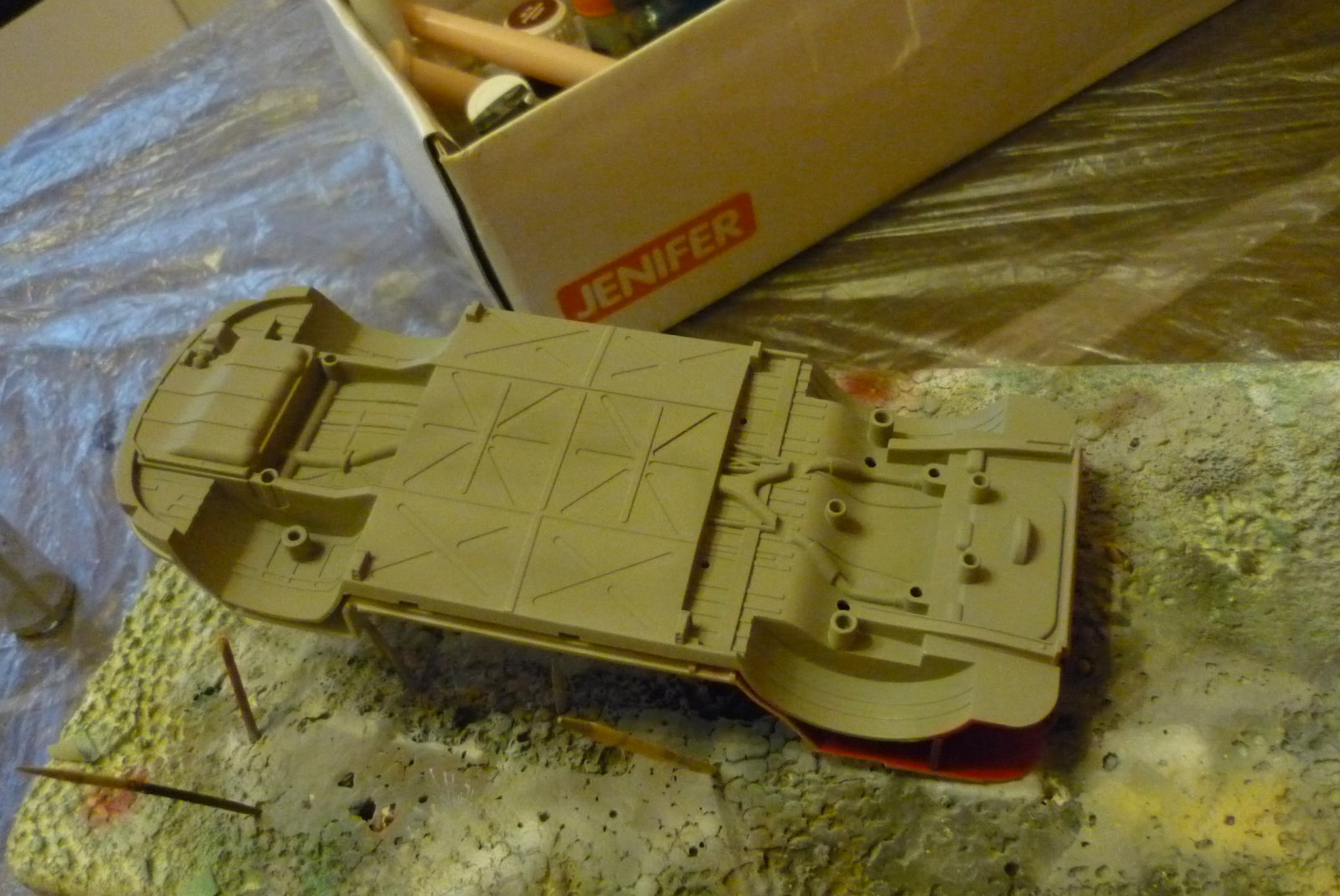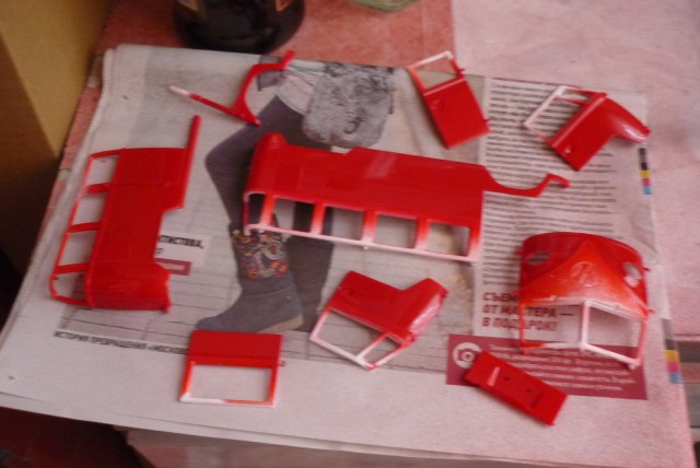 Покупалась в подарок жене... Она тоже участвовала в постройке,некоторые места покрасила.Собиралась модель легко,были трудности с дверями (пластиковые петли) ломались. Красил акрилом Tamiya и Звезда.