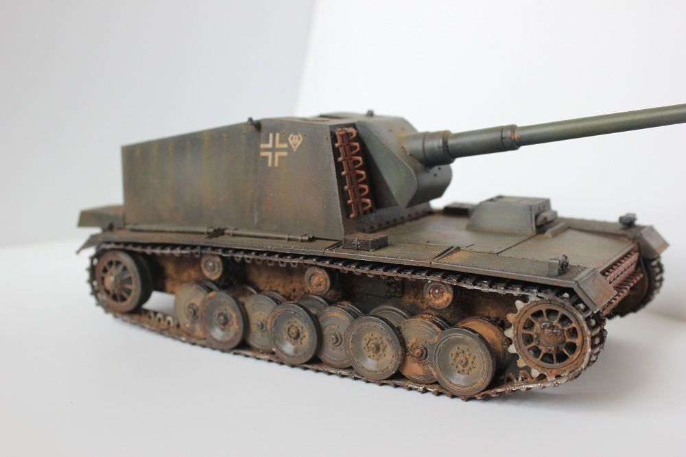 Андрей, очень неплохо. Есть мелкие замечания по окраске. Ржавчина на глушителе, на мой взгляд чересчур яркая, бандажи на катках блестят здорово. В общем прогресс просматривается серьезный. Давай в этом же направлении.