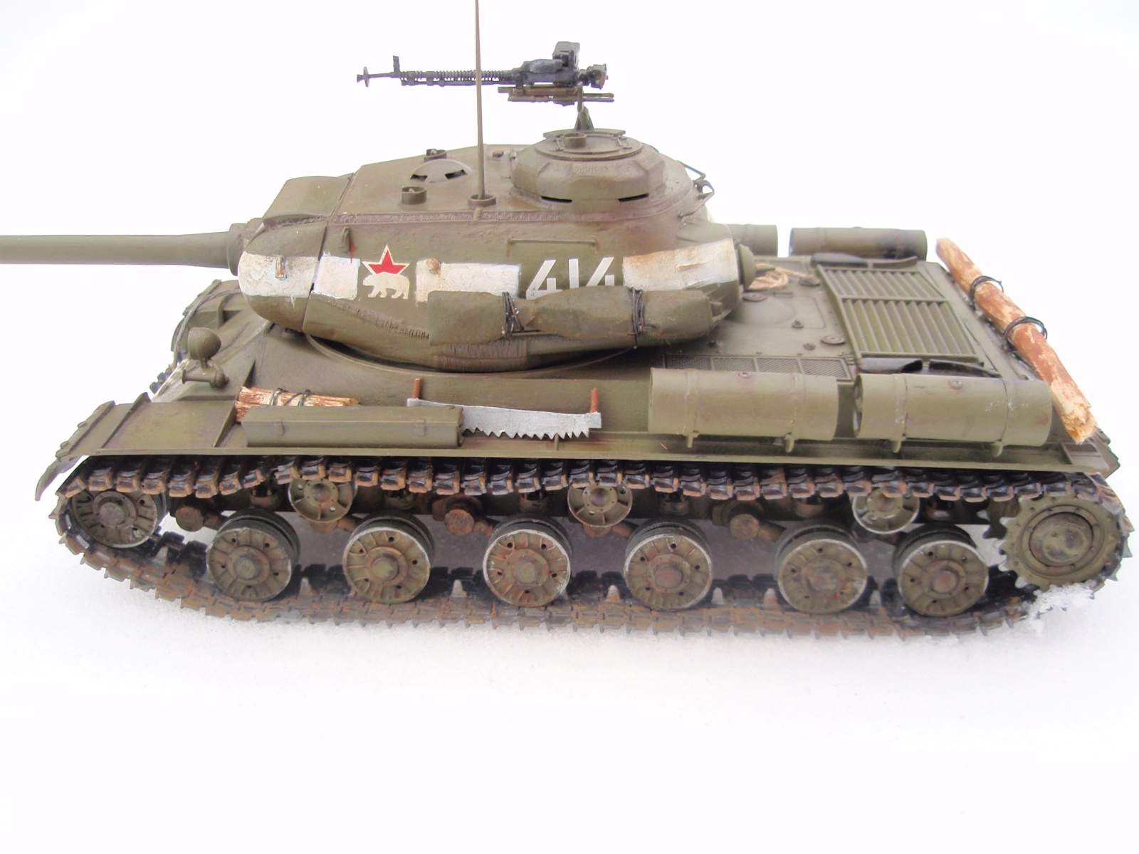 Инструмент надо бы переделать. Особенно пилу. Поаккуратнее покрасить катки, либо загрязнить их так, чтоб не было видно блестящего ребра. Ствол ДШК выровняйте тоже. А коробка для лент вообще от НСВТ, замените. Кроме этого все нормально либо без капитального ремонта неустранимо. Успехов в дальнейших работах.