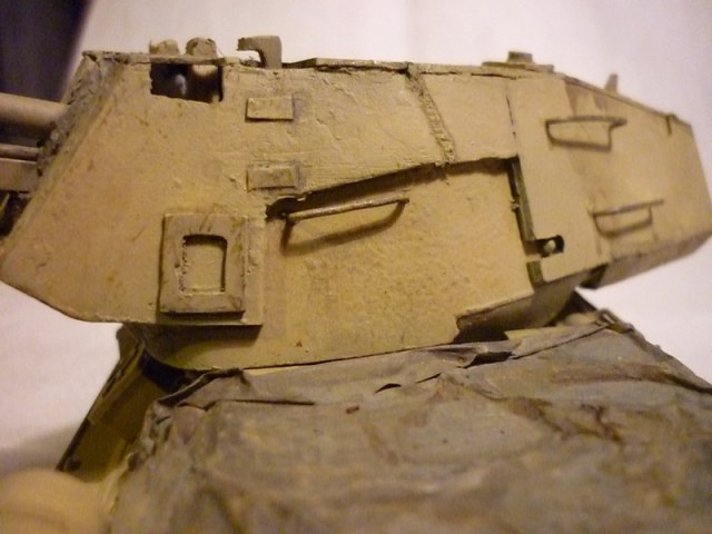 Щель заделаем, имитацию брезента в башне вытащу и переделаю из шпаклёвки, а масксеть то что-совсем не ага?