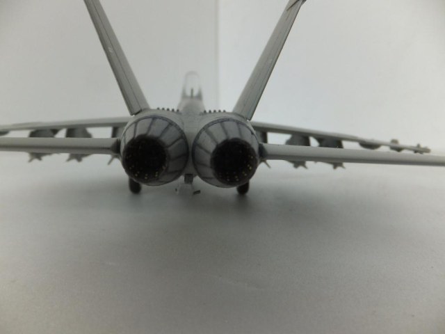 Хорошая работа, но есть ряд замечаний. Расшивка местами выделена не аккуратно. Состав вооружения представленный на модели не имеет никакого отношения к реальности. Поскольку у модели выхлопные отверстия на спине позднего типа, то накрашивать жаропрочные панели не нужно было (привожу пару фото).