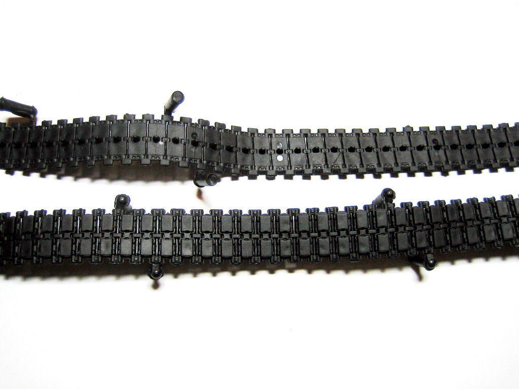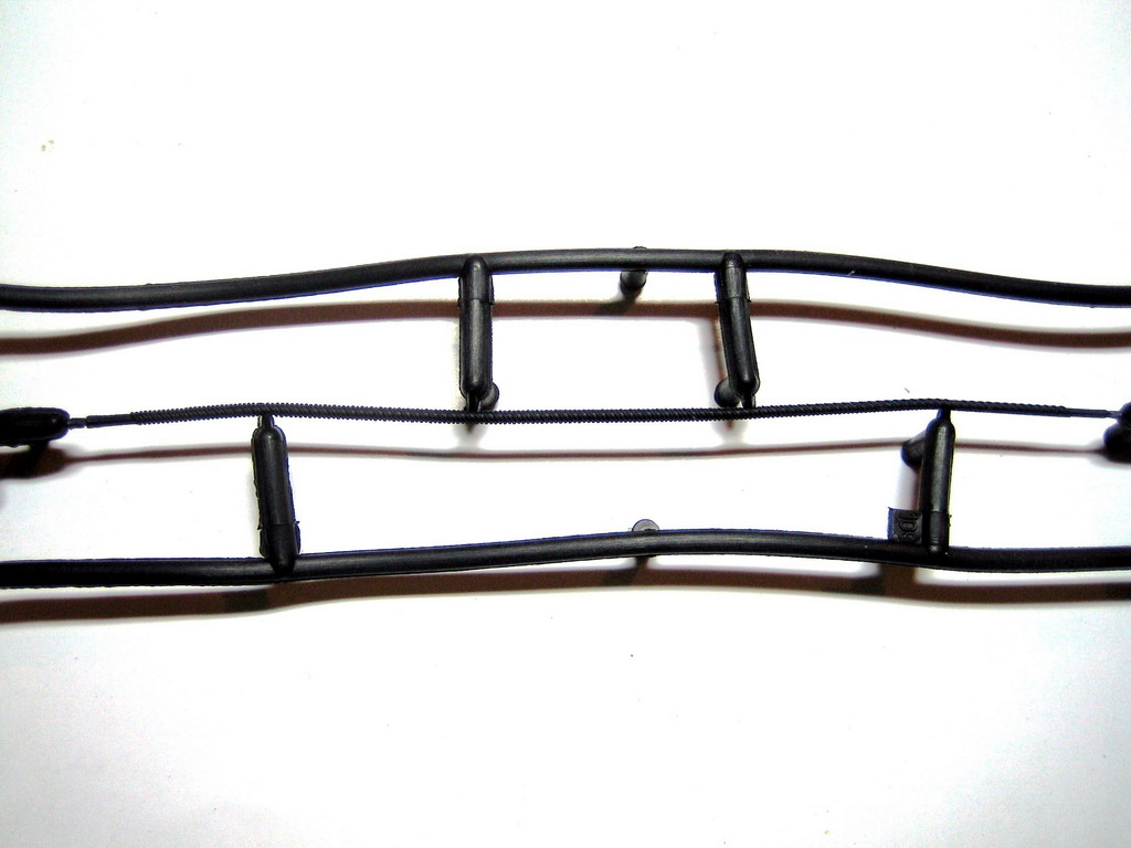 Также в комплекте имеются виниловые гусеницы не очень хорошего качества мелким облоем по краям и следами толкателей на внутренней части. Оптимальное решение по их применению – выбросить и купить рабочие траки от Bronco для PzH 2000. Также имеются резиновые брызговики и очень смешной трос, который я бы тоже отправил в путь вместе с гусеницами. Также имеется небольшая декаль с опознавательными знаками Бундесвера и кусок проволоки для антенны.