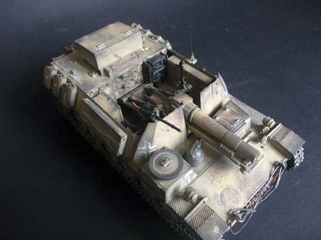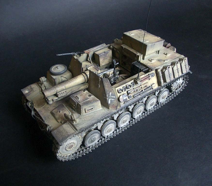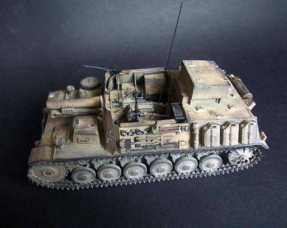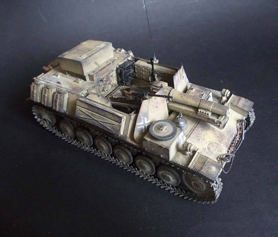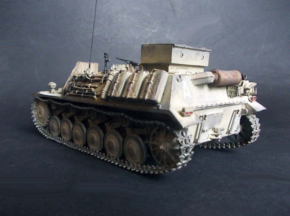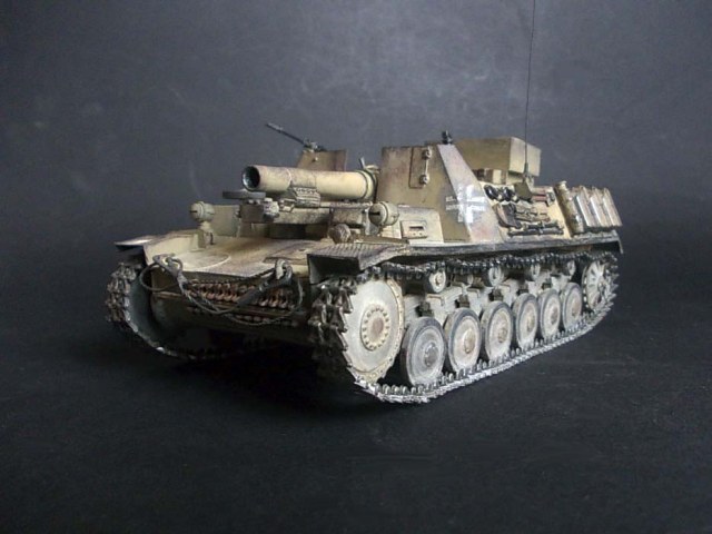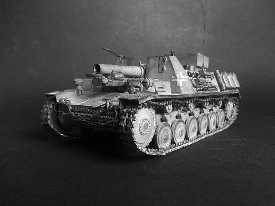 ...Вопрос:откуда именно это название машины?По имеющимся у меня данным,это:самоходное тяжёлое пехотное орудие на гусеничном шасси 15см sIG33 или