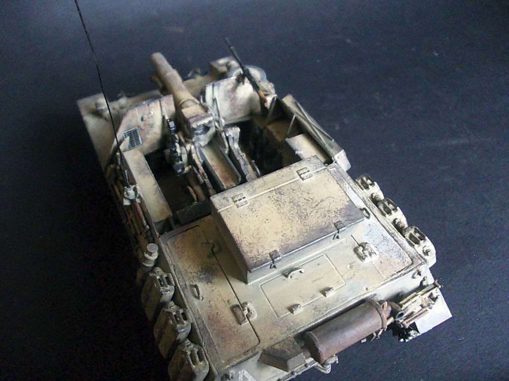 Пыль на ходовой,потёртости- очень понравились.Реалистично получилось.Траки классно легли.А вот с орудием, не очень всё хорошо.И глушитель высоковато установлен..