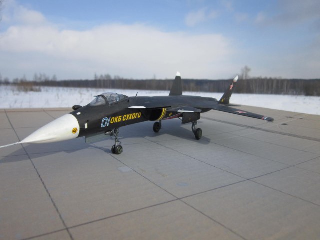 Приветствую коллеги!Представляю Вам модель,самого известно-узна ваемого истребителя как сейчас модно говоря ПАК.По модели;Доработал носовой обтекатель,"подгрузил" переднюю стойку шасси, изобразил гидравлику.Самолет собран давно,если честно даже не помню что еще делал.Кто задумал делать эту модель,собирать в ней не чего.Декали не победимо "серебрят".Спасибо за внимание!