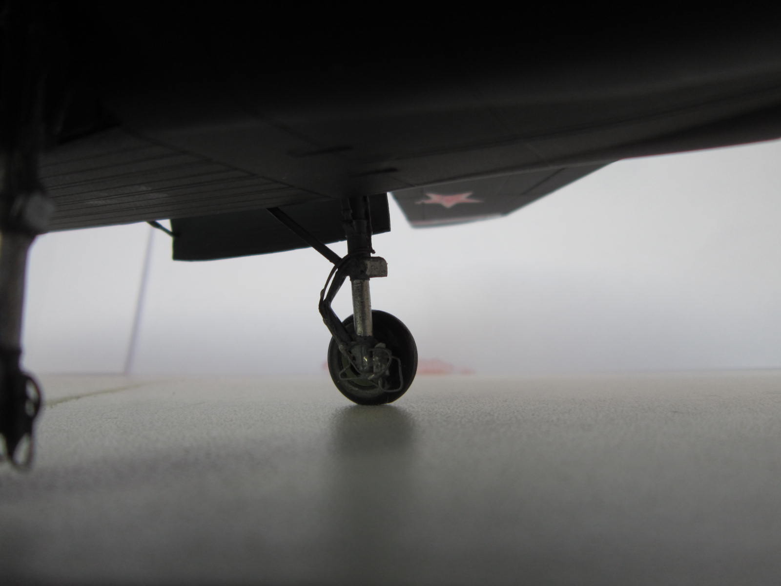 Неплохо, но надо было укоротить штоки стоек шасси, Звезда дает все стойки в полетной конфигурации, с максимальным вылетом так может быть или перед посадкой или после взлета, на стоянке он сидит пониже. Ребро на носовом конусе это правильно, но переход в круглую часть получился слишком резкий на мой взгляд, в оригинале плавнее. На задней кромке крыла в месте стыка с фюзеляжем должен быть уступ