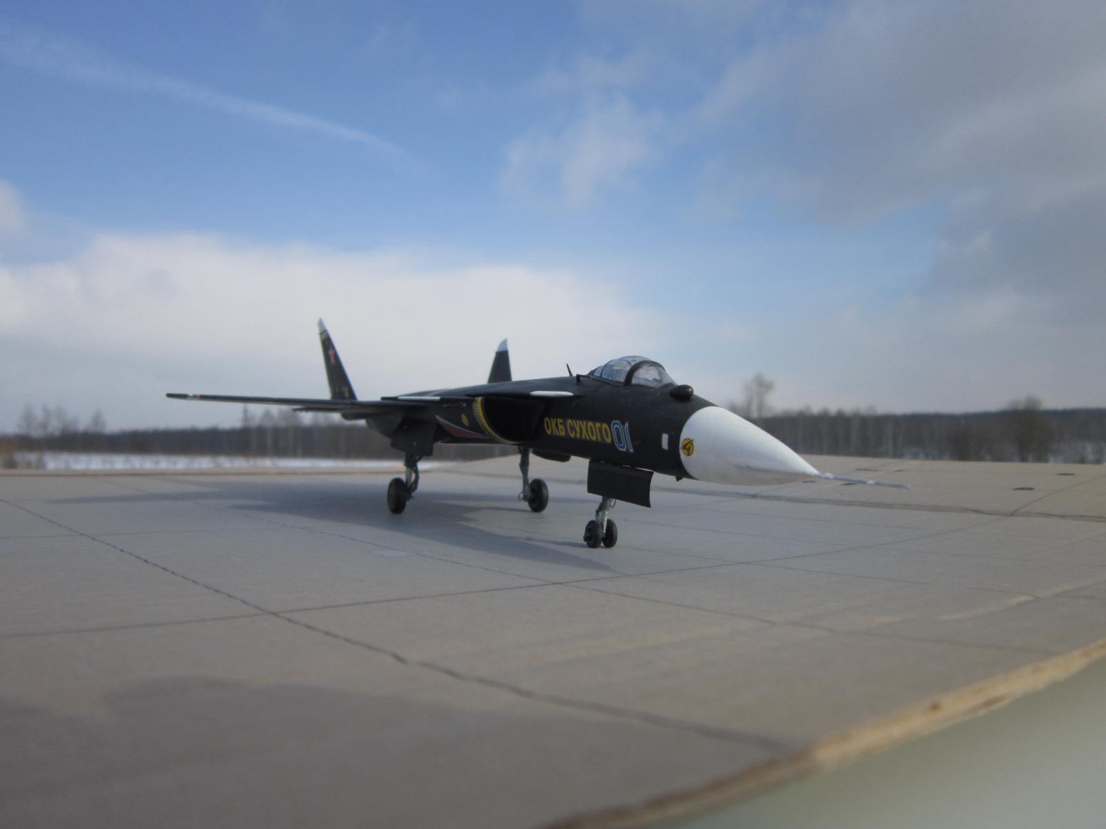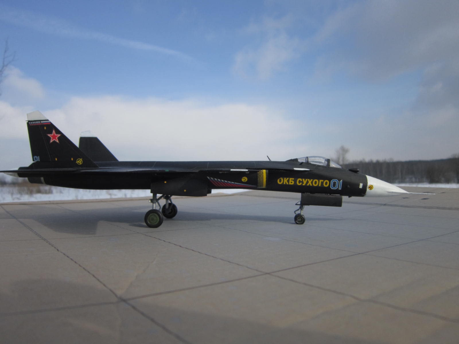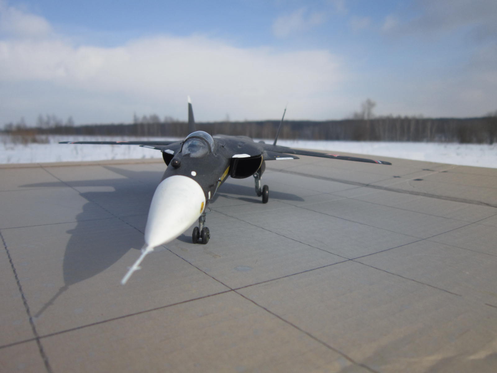 Вроде хорошо вышло, понимаете фото на природе это хорошо- я ведь тоже фотаю так, но дело в том что на них ничего толком неразглядеть, потому они просто для общего вида и восприятия модели. Чтобы увидеть окраску , качество сборки или какие либо доработки( если они есть) нужны фото ближе и желательно на однородном фоне. Я фотаю на листе ватмана. Пытались придать правильную форму обтекателю РЛС? Я счас сам такой строю.