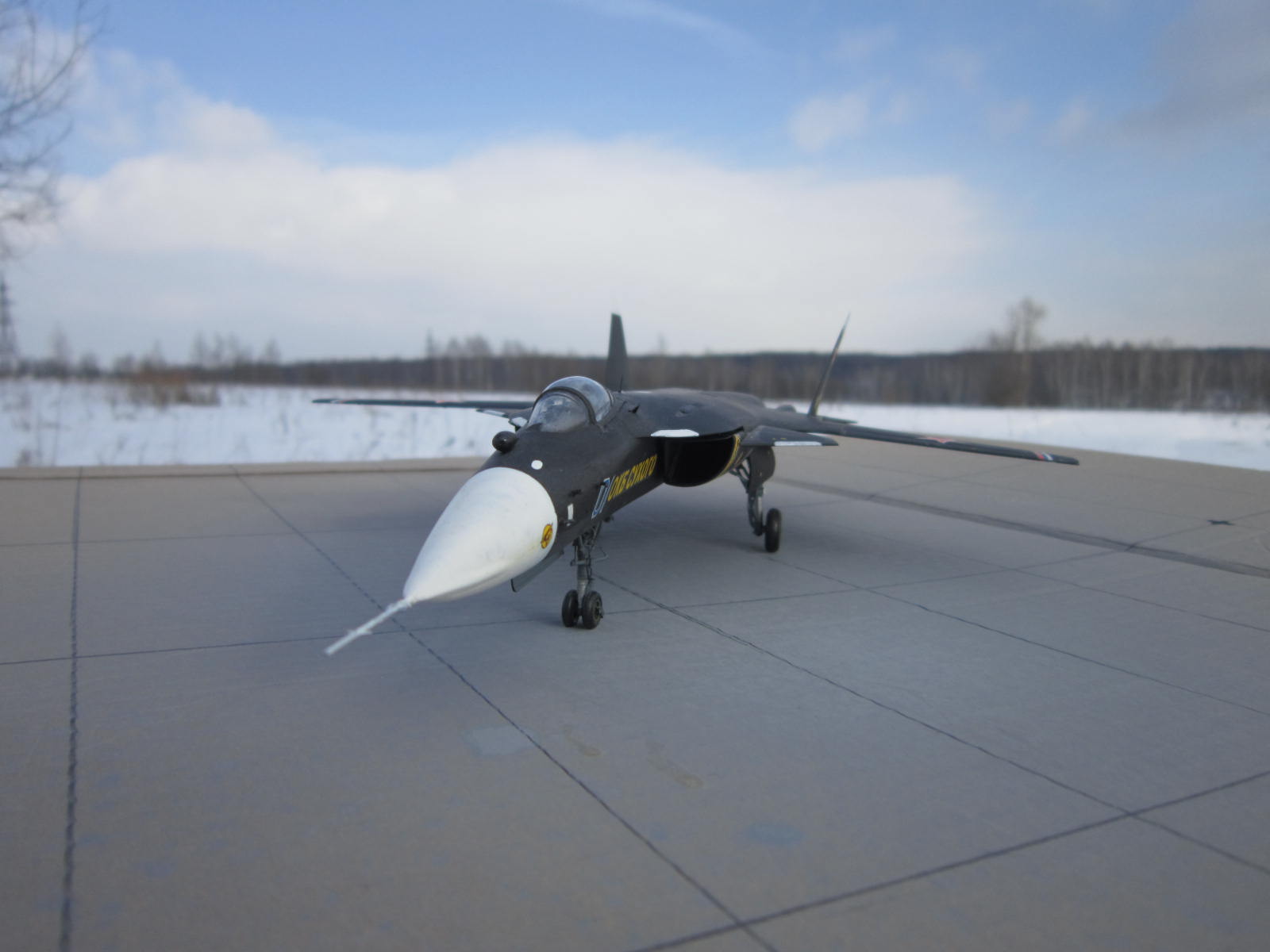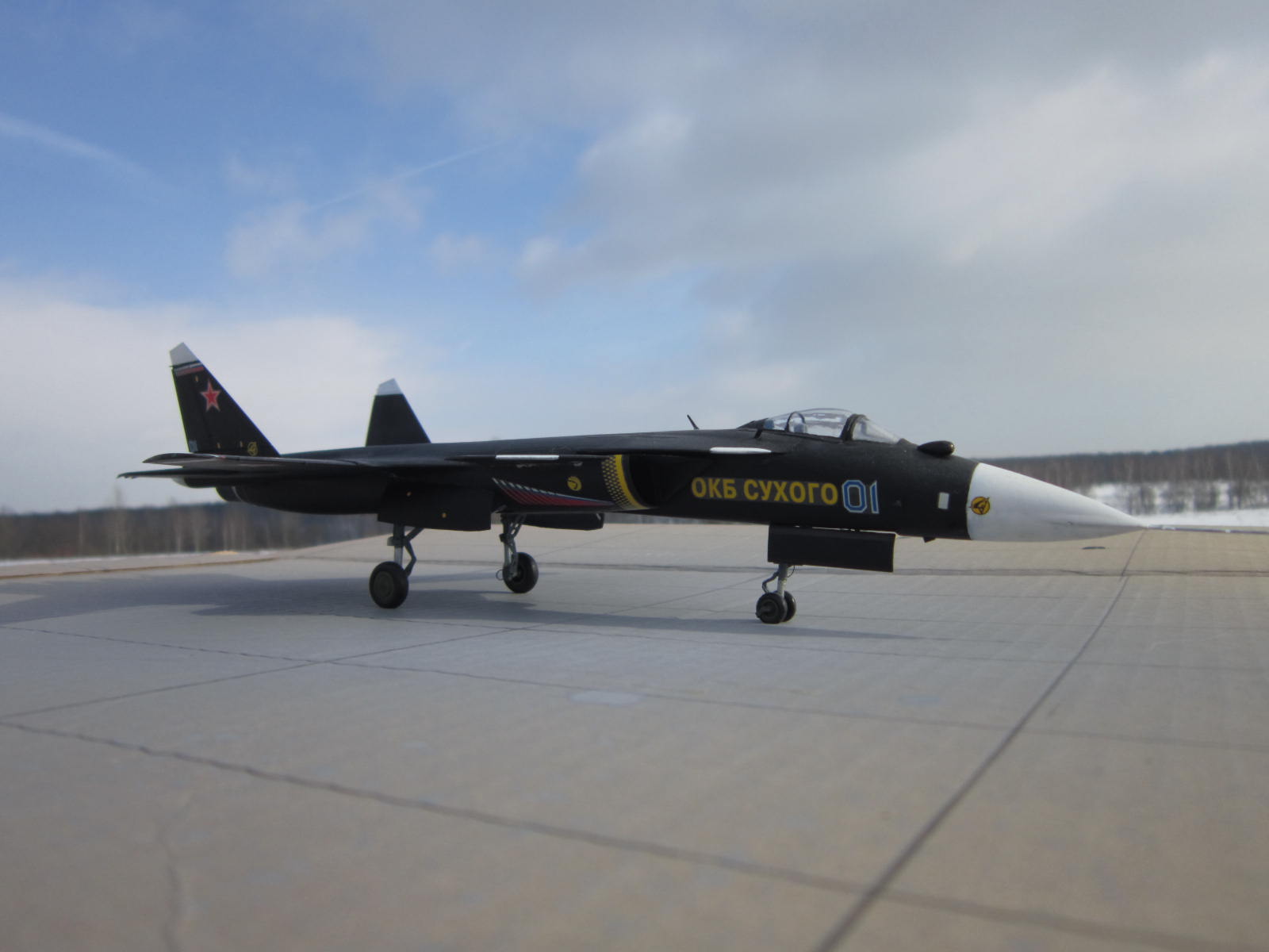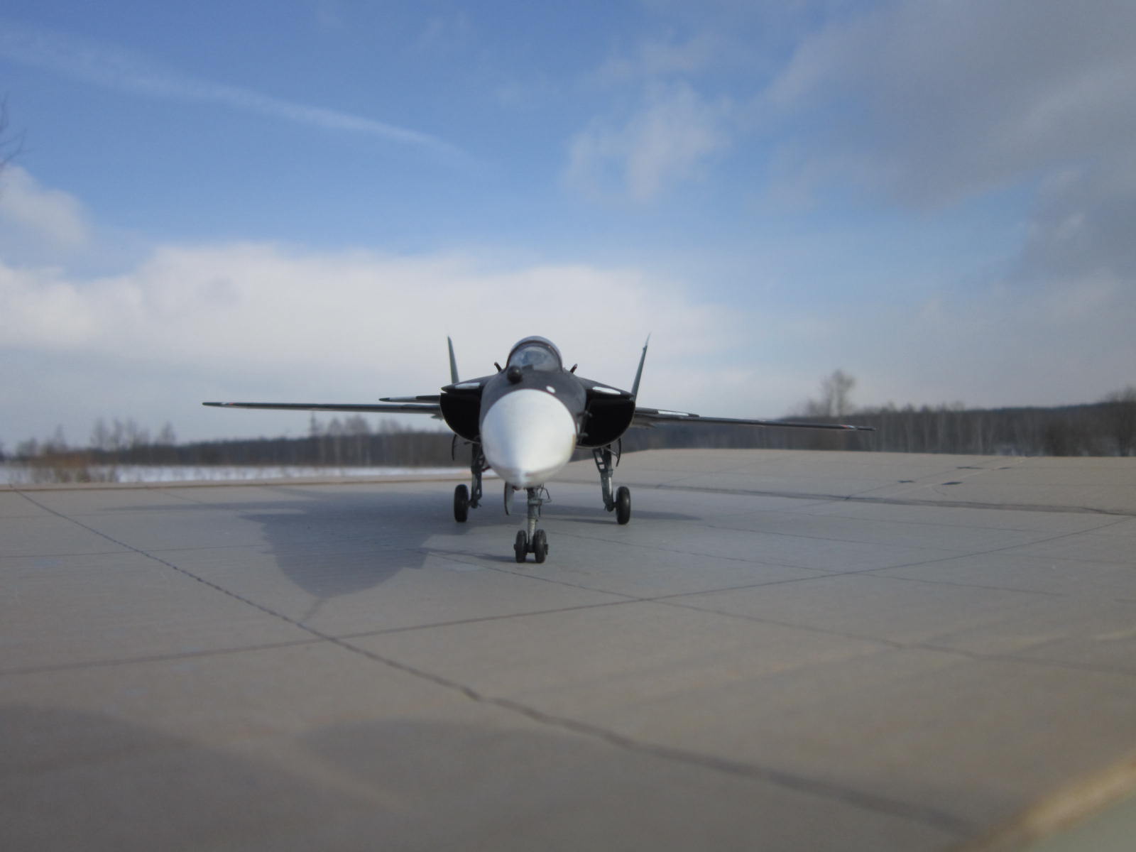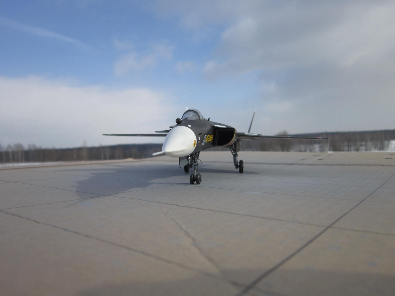 Вроде хорошо вышло, понимаете фото на природе это хорошо- я ведь тоже фотаю так, но дело в том что на них ничего толком неразглядеть, потому они просто для общего вида и восприятия модели. Чтобы увидеть окраску , качество сборки или какие либо доработки( если они есть) нужны фото ближе и желательно на однородном фоне. Я фотаю на листе ватмана. Пытались придать правильную форму обтекателю РЛС? Я счас сам такой строю.