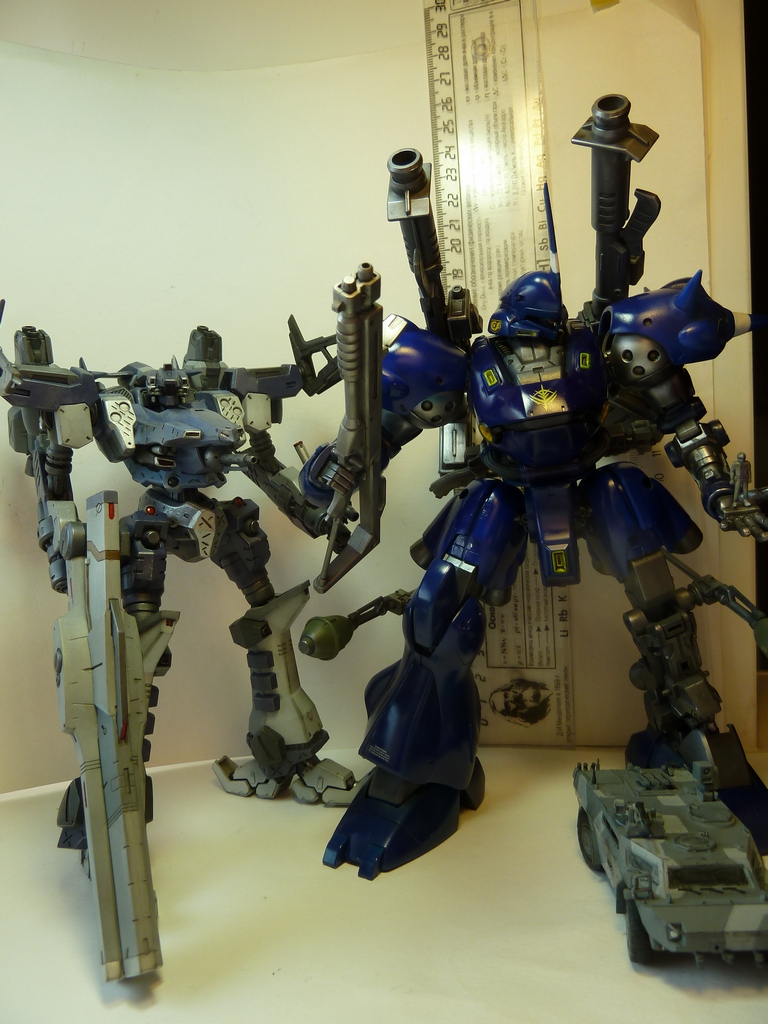 робот огромен-даю фото сравнения с самой высокой своей моделью ARmored Core в 72 масштабе.