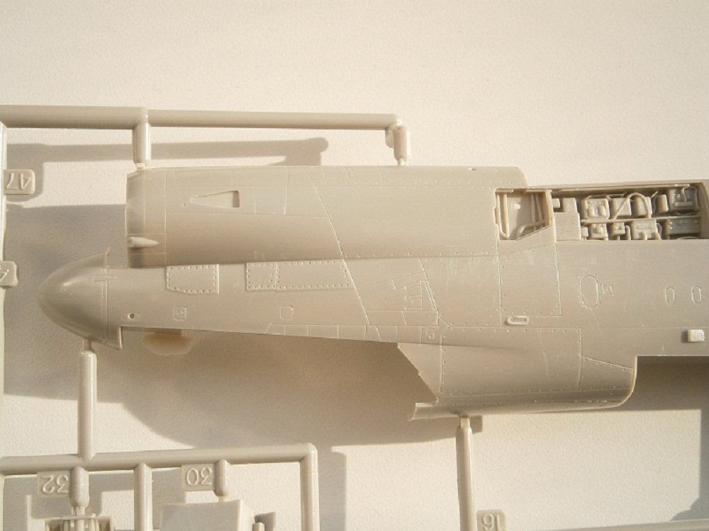 Набор хорош, но также стоит отметить, неверные обводы воздухозаборника, и неприятные швы при сборке воздуховода. механизм складывания крыла выполнен так же по мотивам. хотя есть возможность и не показывать всей его сложности. почти пустые ниши и стойки. место крепления колес к стойке, в моем случае подвергалось полной переделке. ну и передняя стойка так же оставляет желать лучшего. мне ее пришлось переделывать полностью. но сам пластик очень приятный, стыкуемость на высоте.