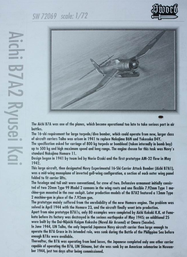 Коллеги, разрешите представить Вам новинку от SWORD - последний палубный торпедоносец-бомбардировщик японского флота B7A2 Ryusei.
