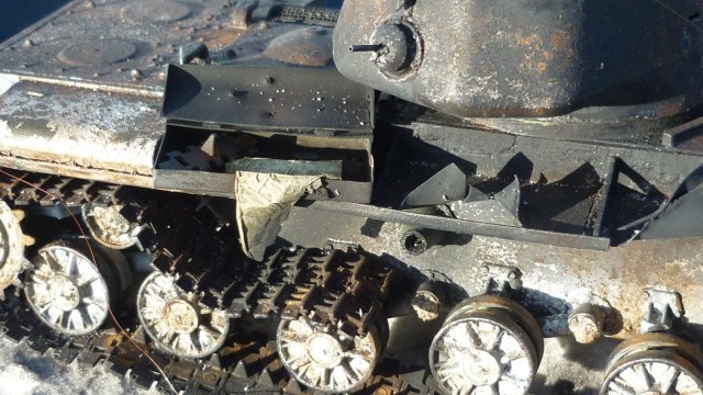 Обгоревшие участки танка и ржавая железка с плакатом очень понравились, больше всего!