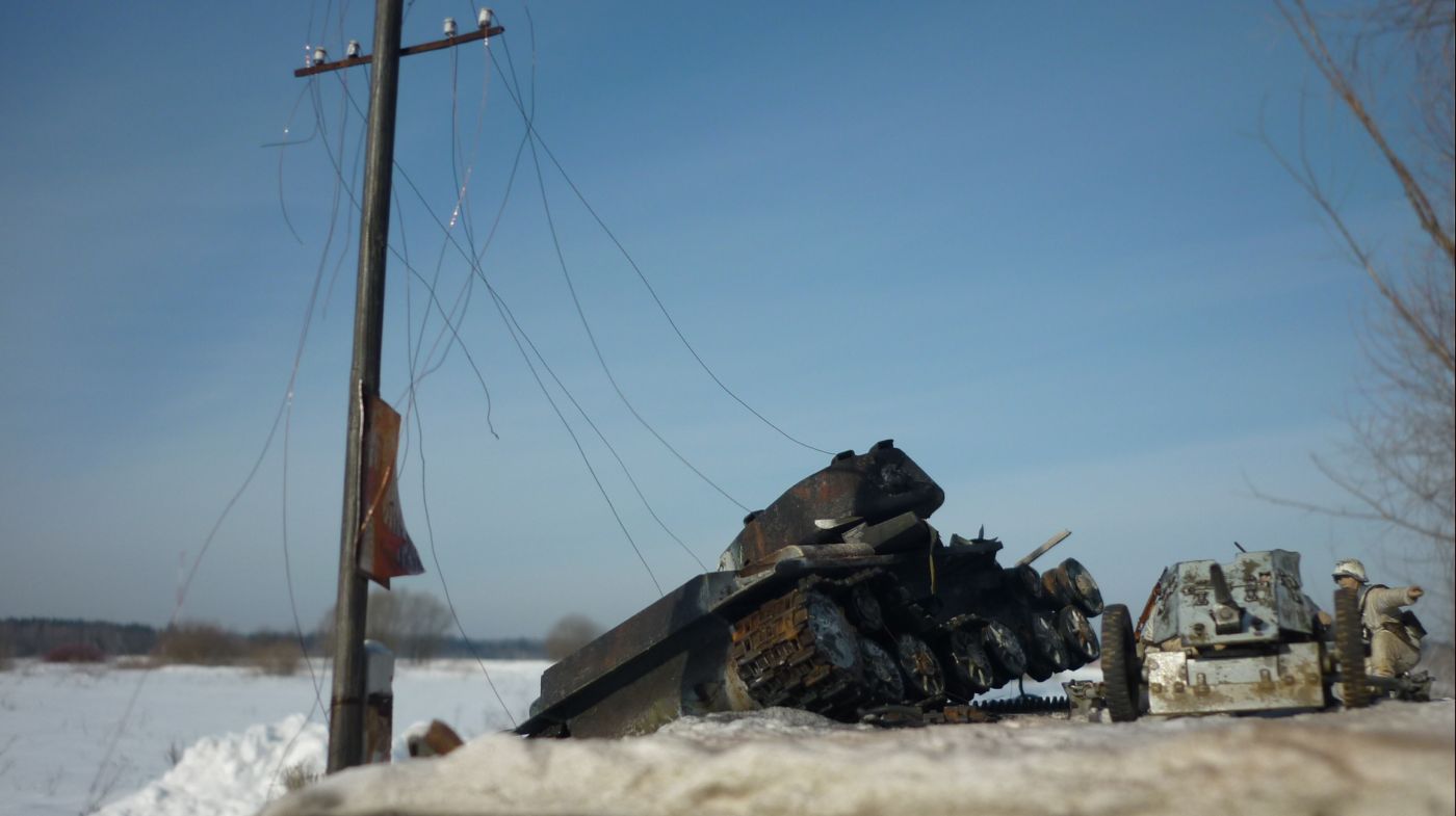 Диорама понравилась! Отдельно стоит отметить горелый КВ!