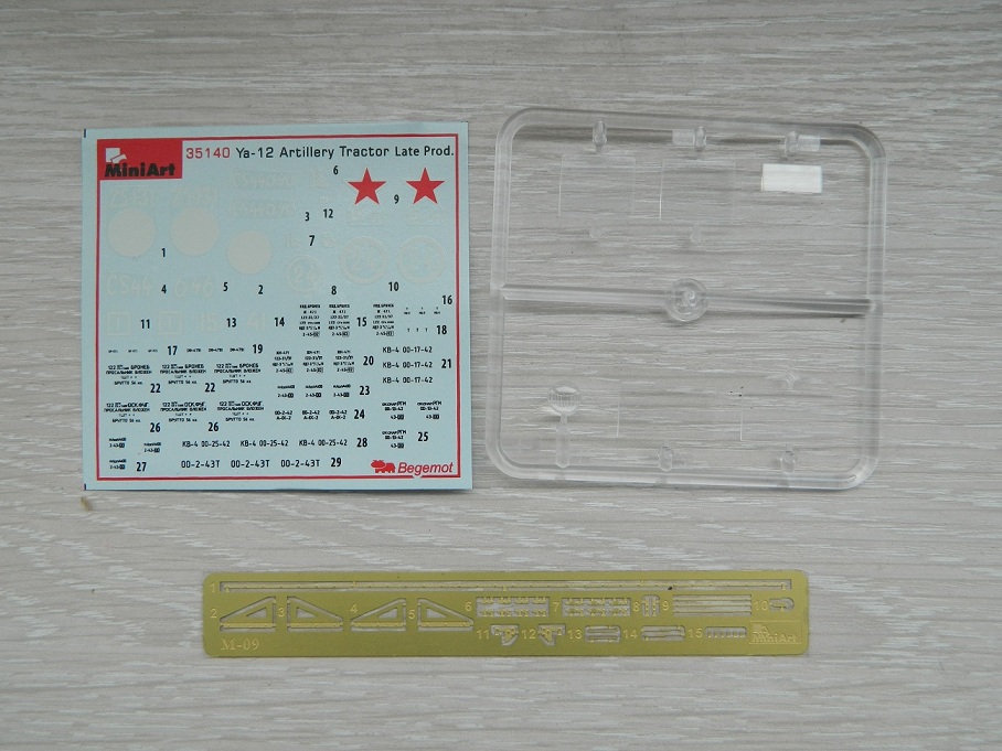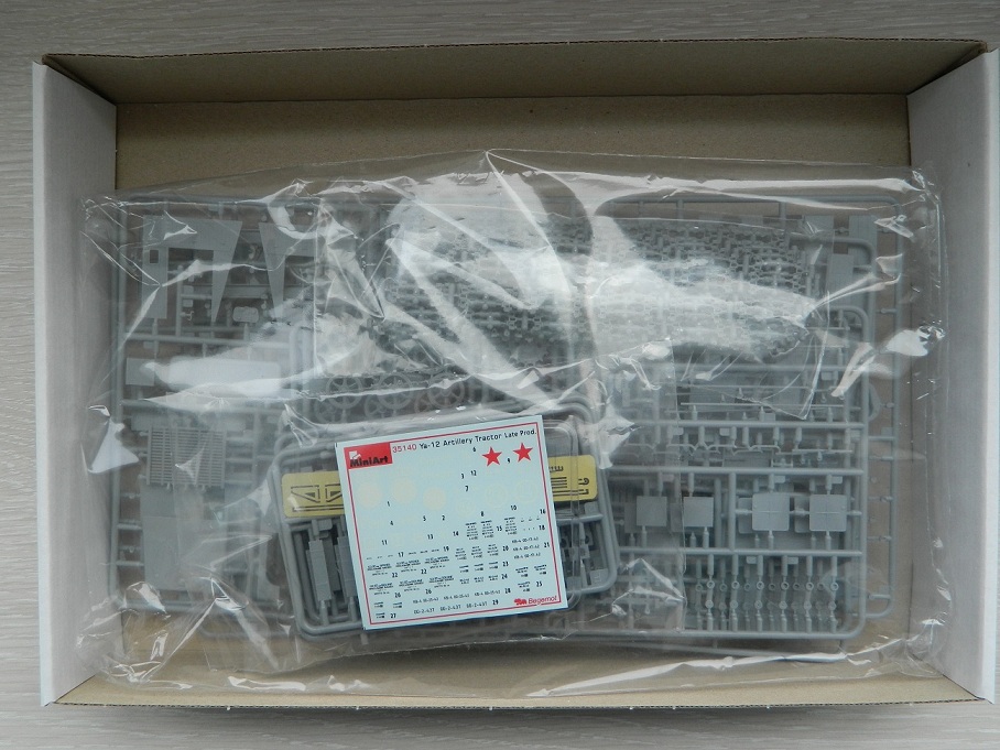 Доброго времени суток Уважаемые! Представляю Вашему Вниманию обзор данного набора от MiniArt. Коробка из довольно прочного картона включает в себя 5 литников с деталями, упакованные в большой пакет, 6 литников с ящиками и снарядами, 1 литник с остеклением, платка фототравления, декали, упакованы в маленьком пакетике, 16 литников с траками в отдельном пакетике и инструкция. При внимательном осмотрении этого великолепия, облоя и утяжин и прочих криминальных элементов не обнаружено, вообще набор производит очень благоприятное впечатление, инструкция проста и понятна. Еще хотелось бы сказать про траки, собираются без клея, на защелках. Приятного просмотра.