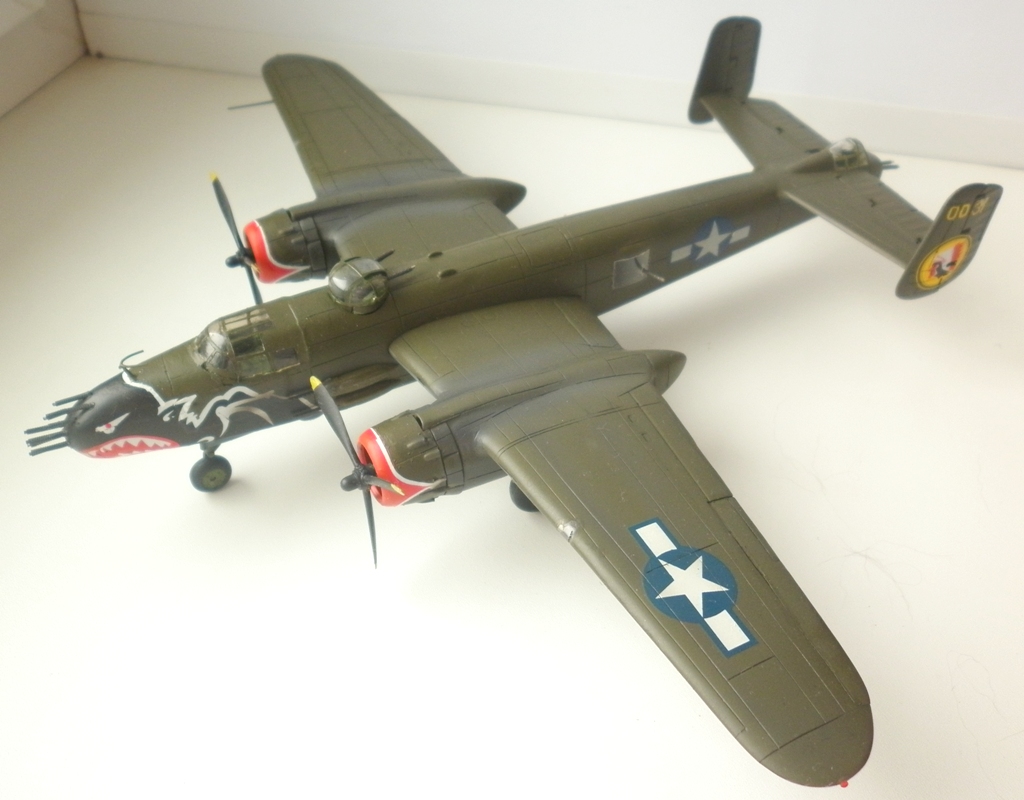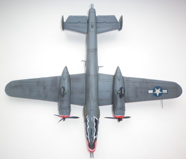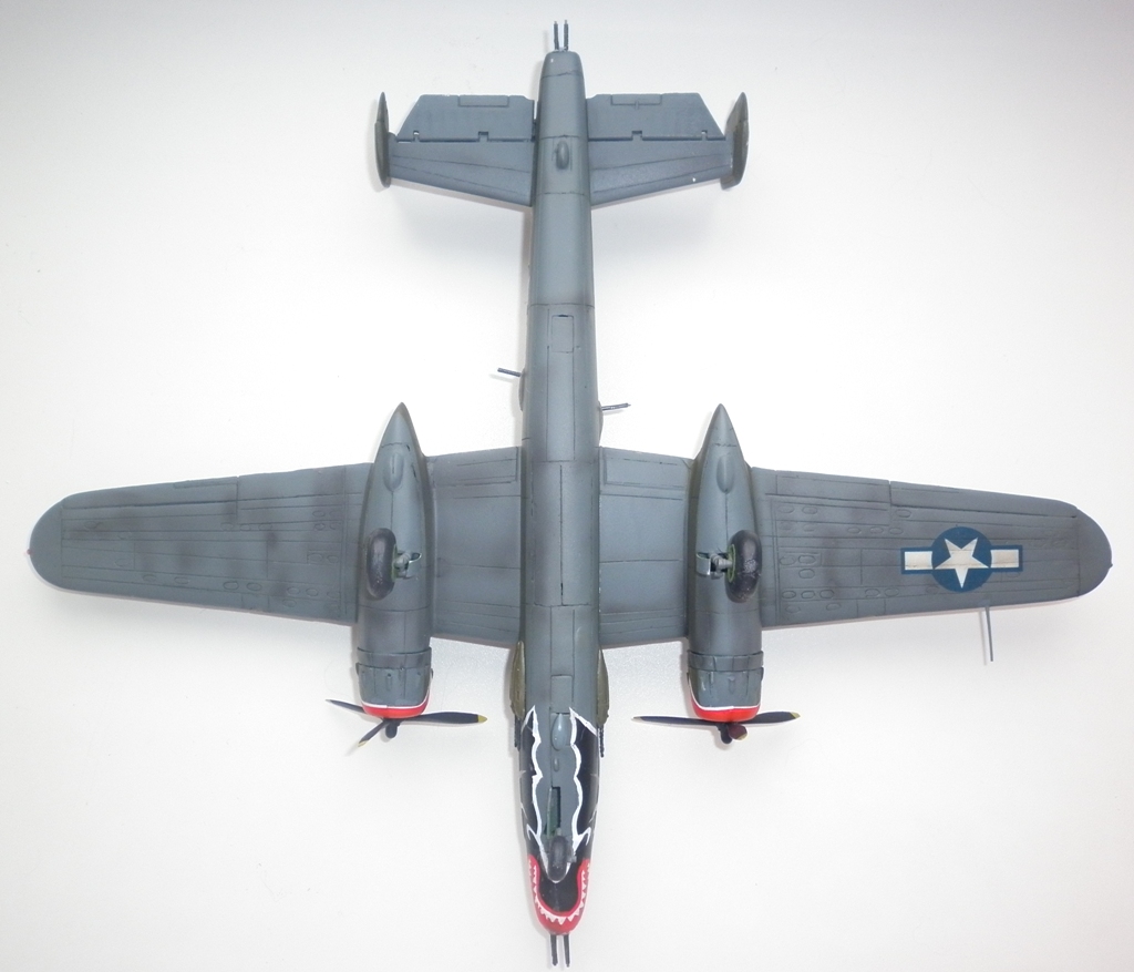 Я принципиально против сколов на американских машинах. В свое время имел возможность осматривать обломки "Бостона" и "кобр". Даже через 50 лет краска держалась как на современном "кадиллаке". Посему , если нет фото прототипа со сколами- правильным буду считать просто замаранную машину. И то... даже на Тихом океане , на островах самолеты периодически мылись ( видел фото П-61 при помывке)
