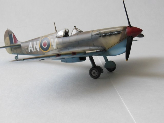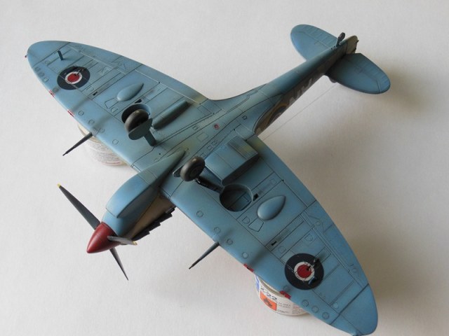 Здравствуйте уважаемые моделисты. Представляю вашему вниманию свою очередную модель. После своего первого спита, захотелось собрать ещё одного, только другой модификации. Собирал из коробки с небольшими доработками, а именно: доработал кабину проводкой, привязными ремнями, пряжками. Сделал БАНО, рассверлил патрубки, исправил расшивку, сверяясь с чертежом. Пулеметы сделал из медицинских игл, антенну из чулка. И ещё добавил тормозные шланги на шасси. Грунтовал тамиевской серой грунтовкой, красил Аканом. Лакировал тамиевкими лаками. Декали легли отлично, никаких проблем не испытывал в работе с ними. Использовал жидкость mark fit. Смывку делал тонировочным пигментом Акан.