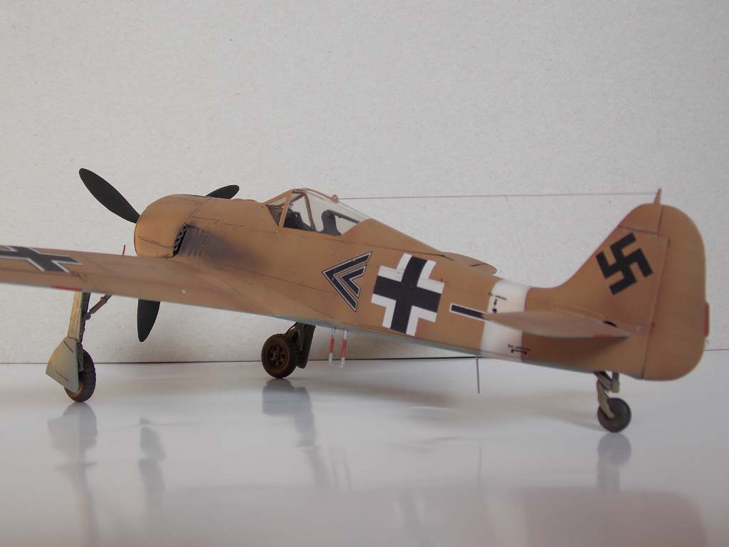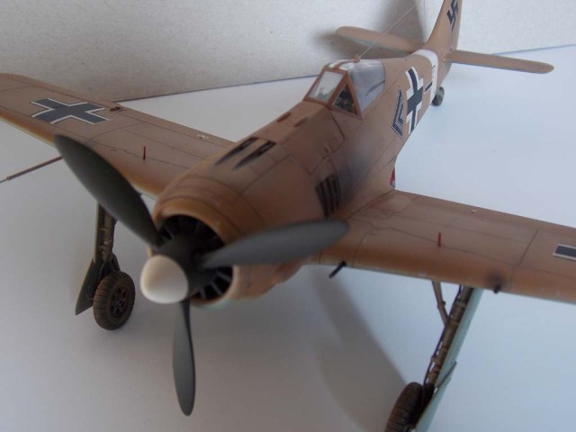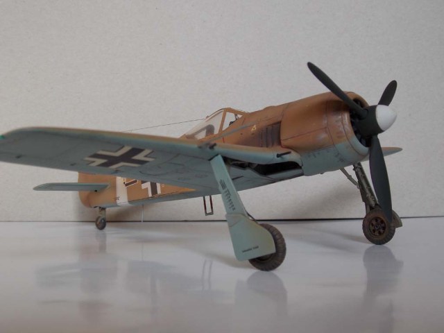Добрый день. Представляю модель FW-190 A-4 фирмы Hasegawa . Довольно старая модель Хаси. Собираемость отличная, но, в следствии возраста пресформы, много утяжин. Сборка « из коробки», миллиметры не мерял.Из доработок : корневые пушки и Трубка ПВД из иголок от шприцов, огоньки БАНО , цветные из бутербродных шпажек, задний – прозрачный литник, солдатики выпуска шасси из тянутого литника, привязные ремни – Great Wall Hobby (GWH). Окраска – ( ну люблю я Африку) – командира II\JG2 obl. AdolfDickfeld , Тунис, декабрь 1942. Красил, как всегда Mr. Hobby. Вызывает вопрос положение маленьких створок шасси – открыты -закрыты. На фотографиях – 50/50. Спасибо за внимание.