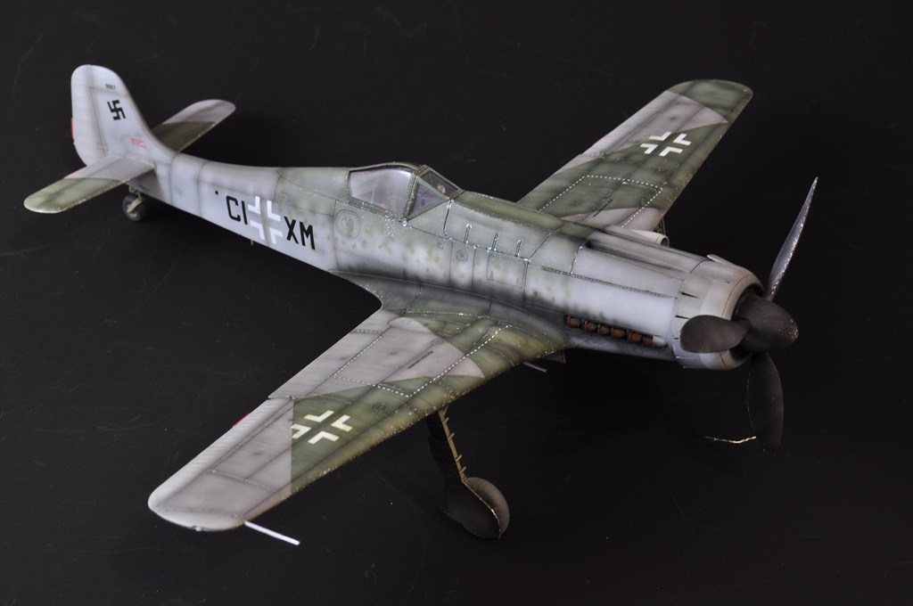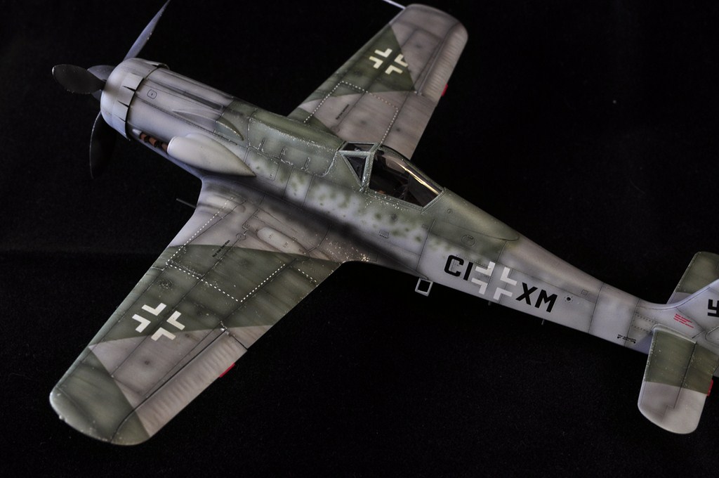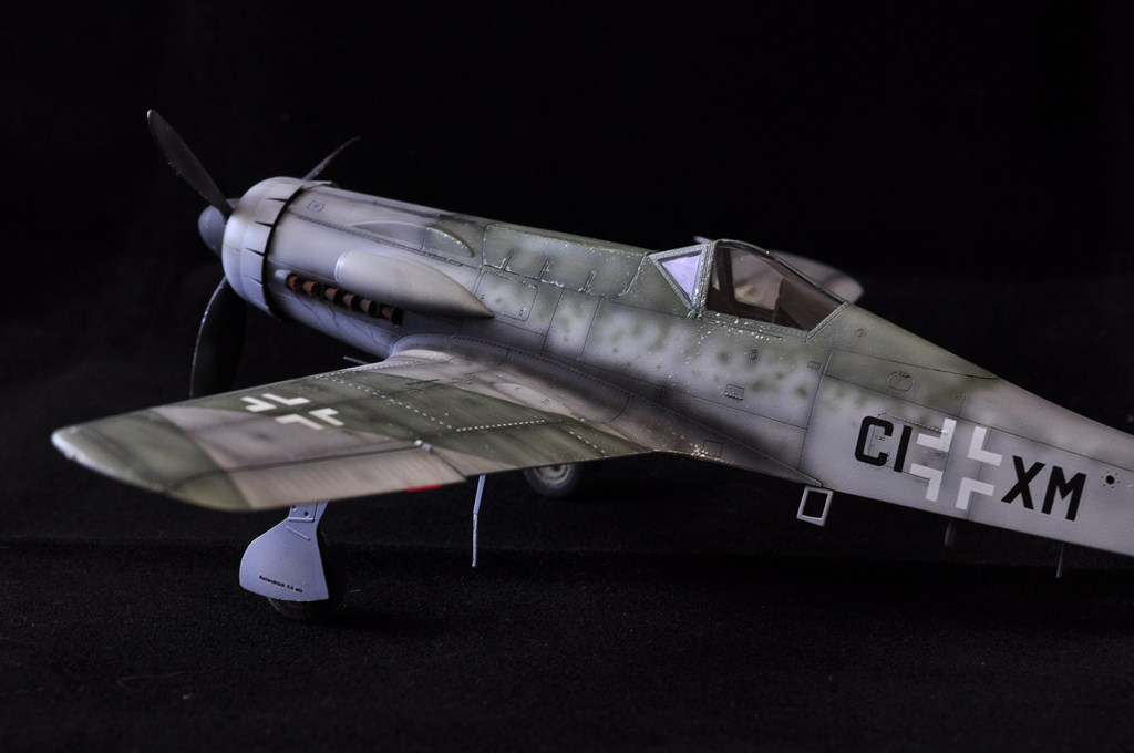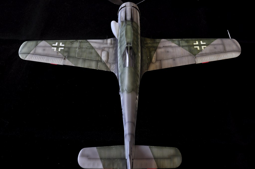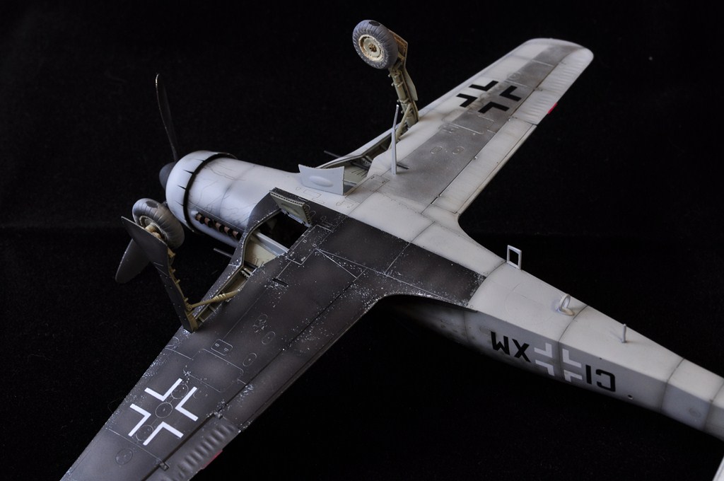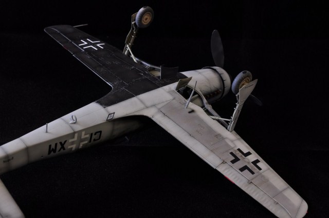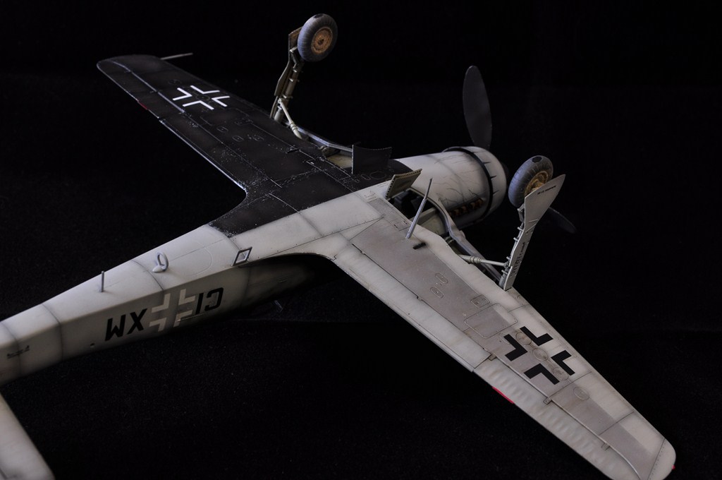 Двойственное впечатление от модели, с одной стороны отличная аккуратная работа, красивая качественная покраска, правда с перебором прешейдинга зато сколы хороши. Но..! окраска совершенно не соответствует прототипу с этими ОЗ! Чёрный винт в топку-не было у немцев чёрных винтов, да и зачем вы сделали сколы до металла на деревянных лопастях?? Тросовой антенны не было, это правильно, но не убрах косяк китайских производителей-перегородка в нишах, колёса туда не войдут. Диски колёс должны быть чёрными, врочем мелкие косяки далее можно уже не считать...