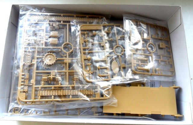 Модель находится в стандартной красочной "тамиевской" коробке. Каждый литник и деталь упакованы в отдельный пакет. В наборе отдельно даны ванна корпуса, верх корпуса, рубка и 7 литников с деталями. Имеется также инструкция и набор декалей.