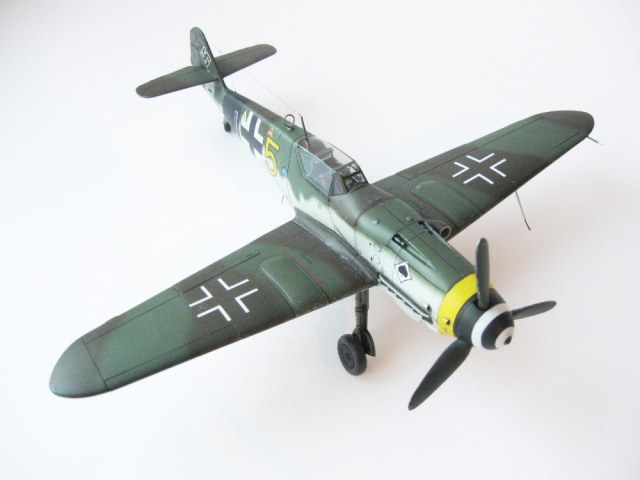 Добрый вечер Уважаемые коллеги!Разрешите представить на Ваш суд очередного "мессера" в моём исполнении.Модель довольно простенькая,собирается хорошо,шпатлёвки ушло самый минимум,и то в районе "совка" радиатора.В носовой части накатал клёпку,и то по "мотивам".Доработки как всегда минимальные-тормозные шланги,ремни-травление,антенна-бантик.Грунтовал Тамией,краски,лаки и тон.пигмент-АКАН.Низ-RLM-76,верх RLM-82.RLM-81b.Камуфляж накрашивал в "рукопашную".Модель без конкретного прототипа,хотя может и летал такой...К табуретам готов!Приятного Всем просмотра!