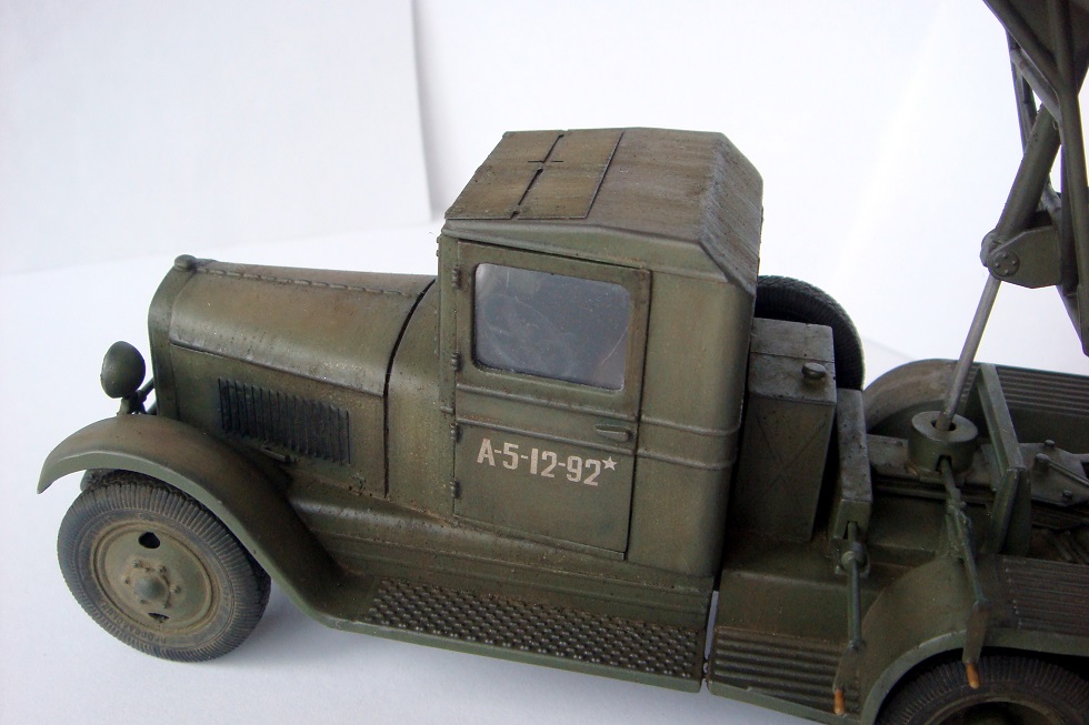 Думаю, история «Катюши» и ее роль в Великой Отечественной войне хорошо известна и поэтому излагать ее не имеет смысла. Набор от ВЭ также (печально) известен сообществу: гремучая смесь литников ЗиС-6 от «Алана» и литников пусковой установки от «Звезды». Похоже, что производитель долго ломал голову над тем, как бы получить максимально дурацкий в плане сборки набор - стыкуемость деталей никуда не годится, практически на каждой облой и сдвиги пресс-форм. Более того, оказалось, что половины деталей производителем вообще не предусмотрено. Особенно этим страдает ходовая часть, на которой пришлось вручную придумывать демультипликатор, тормозные (или как их там) тяги etc. Дальше все шло легче, ибо втянулся в процесс. Разбавил набор травлением от «Eduard» и смоляными колесами от «Комплект ЗИП». Грунтовал, как обычно, тамиевским спреем, базовый цвет — водный акрил от Revell. Далее акварельная смывка и пр. Пыль и копоть изобразил с помощью тамиевских пудрениц и пигментов «МастерПигмент». Конечный результат на фото. Буду рад отзывам коллег!