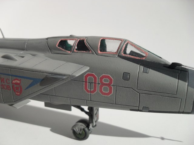 Прототип довольно известен, борт 08 «красный» Борис Сафонов, 174 –Печенгенского ГвИАП им. Б.Ф. Сафонова, г. Мончегорск – 12. Выбрал я его не случайно. Почти 20 лет назад, в марте – апреле 1993 года, будучи курсантом Ломоносовского ВАТУ я был на стажировке в этой части. Стажировка начиналась в 1 АЭ, в которой и находился этот самолет. Короче ностальгия…