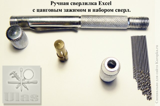 Часовщики называли/называют?/ данный девайс "КЛЮББА",но этот не из лучших.Цанга одна,к томуже глухая,непроходная.И зачем такие сверла ,которыми просверлить затруднительно?