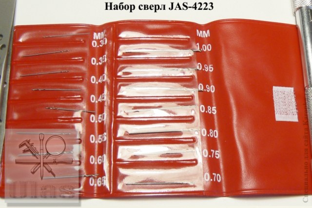 В наборе 15 сверл с шагом увеличения размера 0,05 мм. Удобный чехол, не надо заморачиваться с баночками-скляночками-коробочками.
