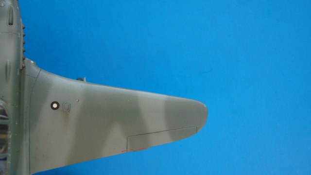 Единственный минус - не до конца поборол щели на нижних плоскостях (просто какой-то злой волшебник раскрой этой модели проектировал). Не видел еще ни одной модели, чтобы в месте стыка верхней и нижней половинок крыла не имелся след, но в данном случае он минимален. Нашёл - потому что искал и помню, сколько с ним боролся.