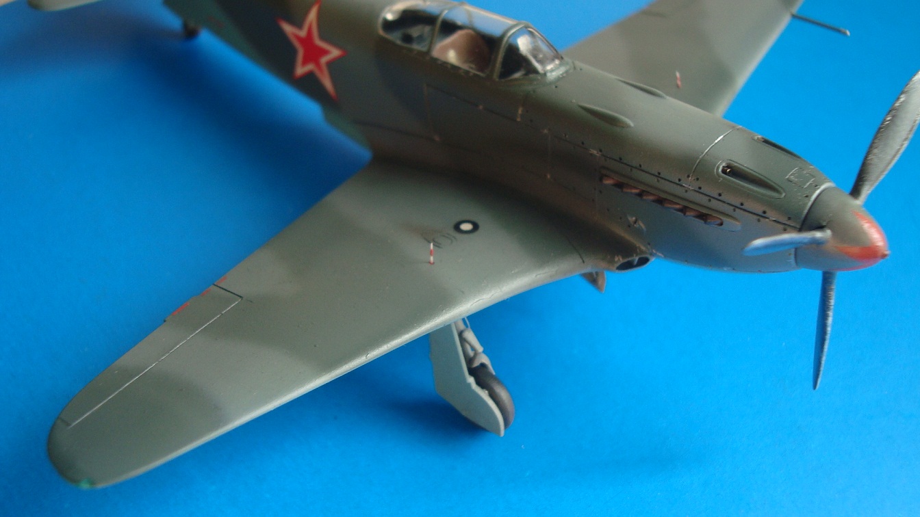 Ваш Як - красавец! Хорошо сделана модель, красиво, аккуратно. Одним словом смотрится. На изкорбочную модель она не похожа. Одни только доработки механизма открывания створок шасси чего стоят! А ведь модель очень маленькая, и такие вещи трудно делать на маленьких объектах. Да их и в 48 масштабе делает не каждый моделист. О недостатках. Про БАНО вам писали правильно, на ЯКе они капелькой в торце крыла, про воздухозаборник тоже правильно. И про номера тоже правильно. Да, в сети есть фотографии самолетов без бортовых номеров. Но скорее всего это проходившие войсковые испытания, экспериментальные и т.д. На приведенных вами фото первый не похож на серийный самолет, второй Як-3ПД-экспериментальный. А раз вы собрались делать самолет с образом "воина-трудяги", то тактические номера у него должны были быть. Да и фотографий в сети самолетов с номерами гораздо больше, чем без них. Это в принципе при желании можно поправить. А вот бронестекла на вашей модели нет.
