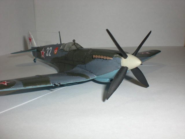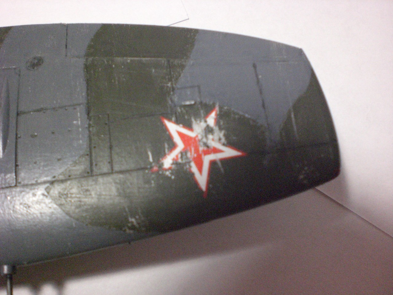 На данной модели пробовал выделять обшивку, наносить сколы и камуфляж( его делал с использованием малярного скотча, но к сожалению не получилось, возможно из за того, что красил кистью, а не аэром). Антенну делал из лески.