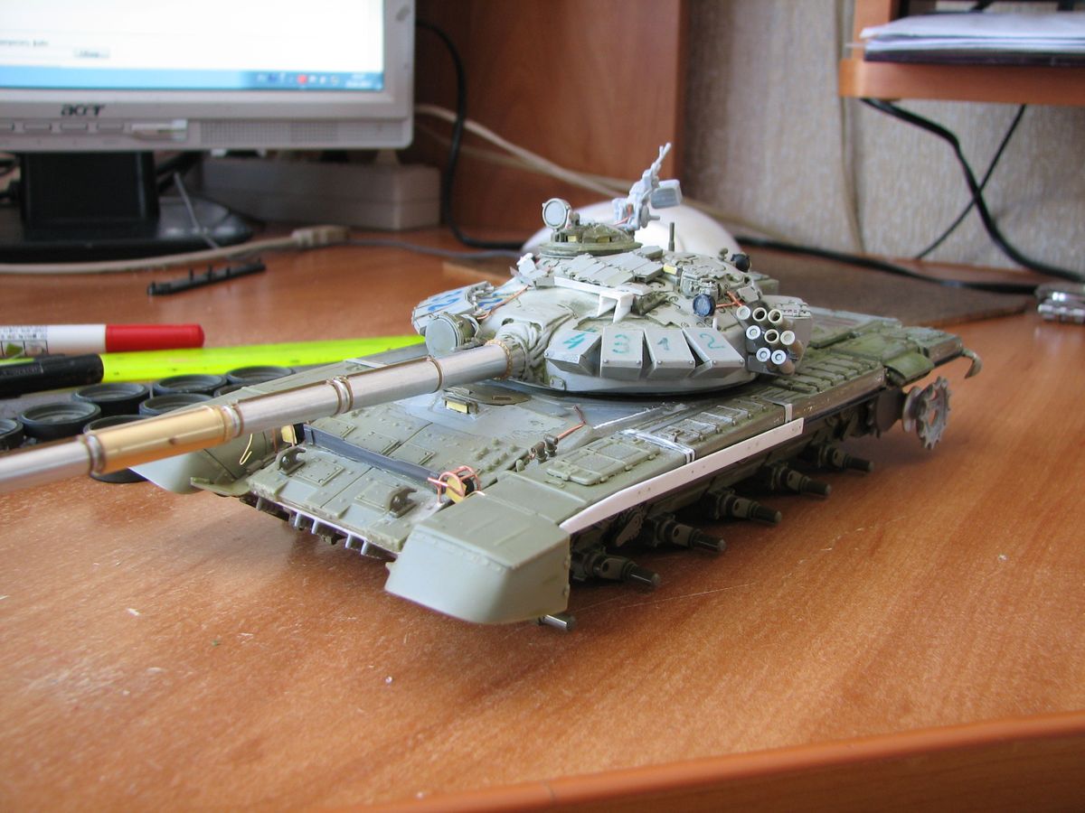 Есть пару вопросов.На фото реального танка представлен Т-72БА,фото из Чеченской республики с вождения на полигоне. На нем есть отличительные особенности ,это датчик ветра и ходовая с траками от Т-90.