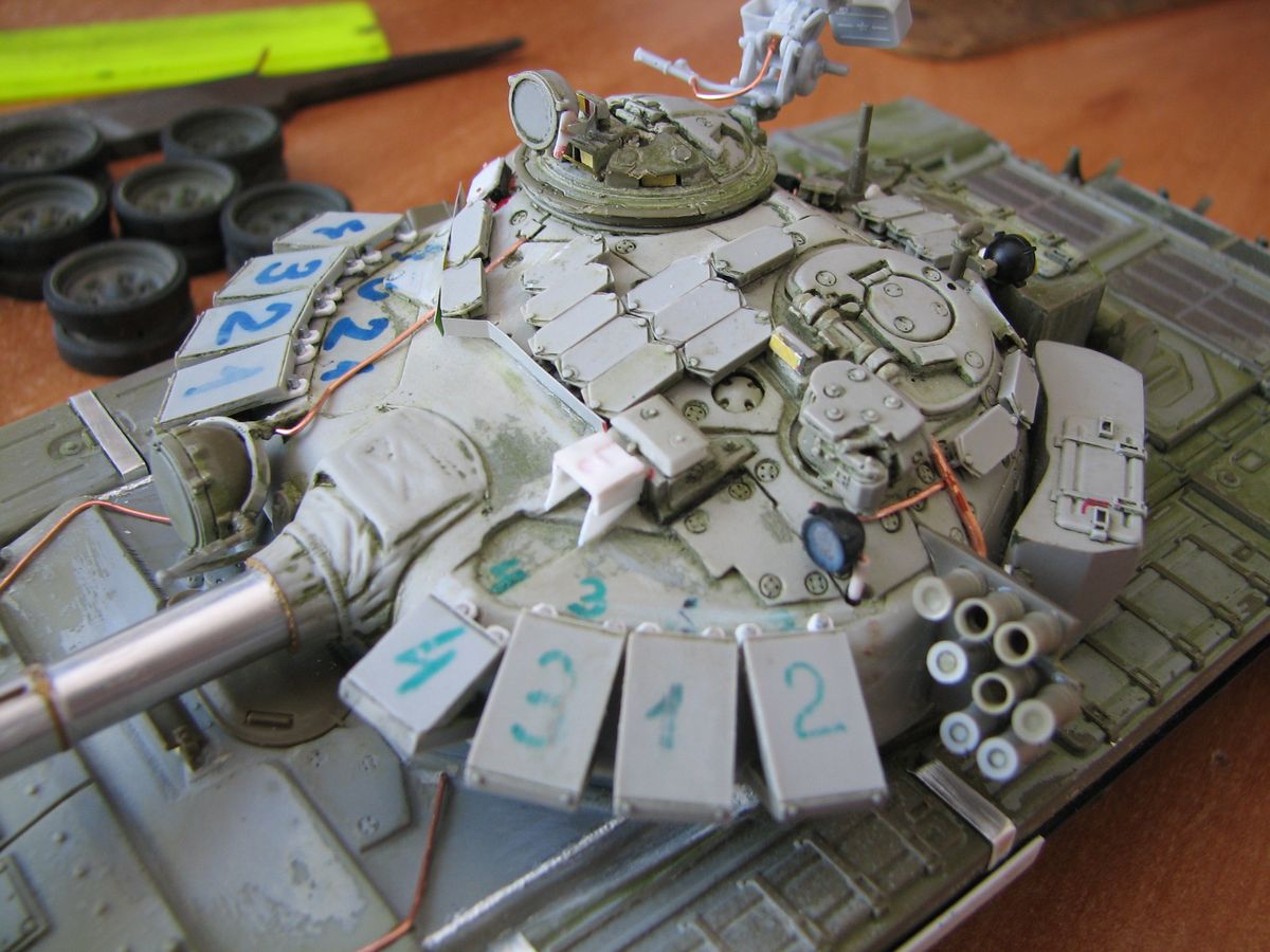 Кроме собственно заводских наборов в модели использованы баночная жесть, пластик 0,3 мм и различная проволока. За время лежания без дела пара маленьких блоков ДЗ с башни пропала, пришлось сделать их самому.