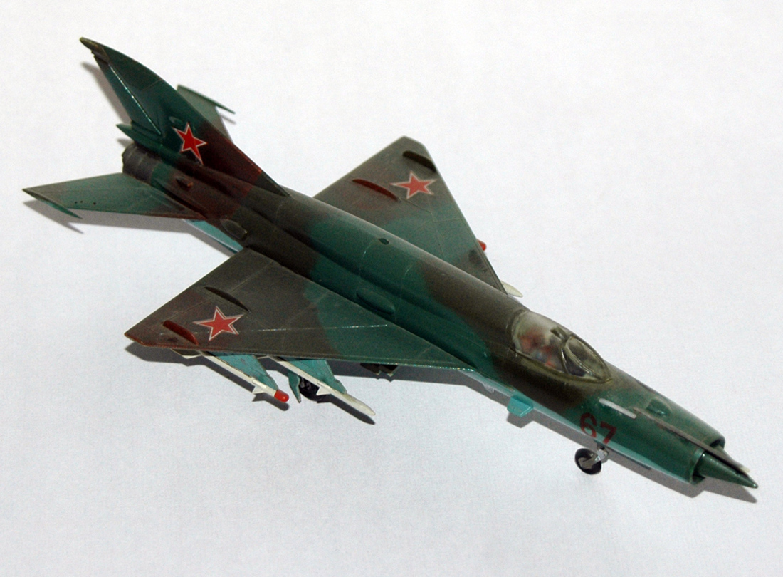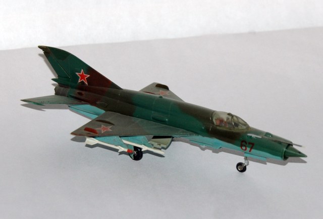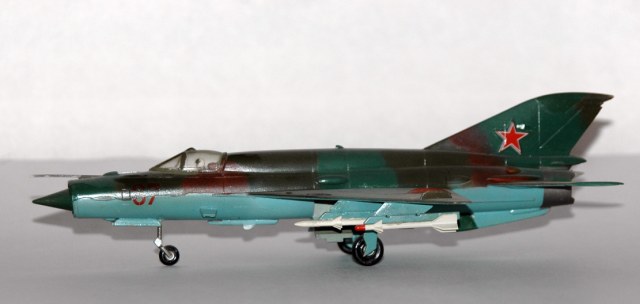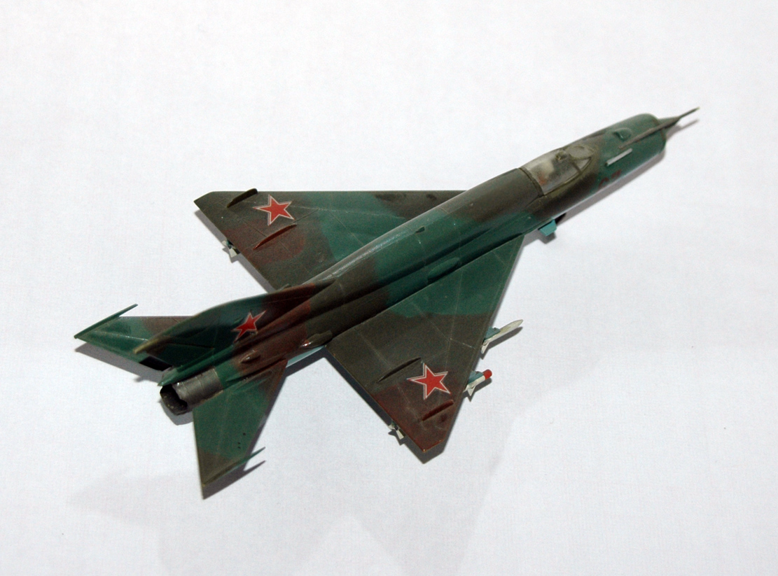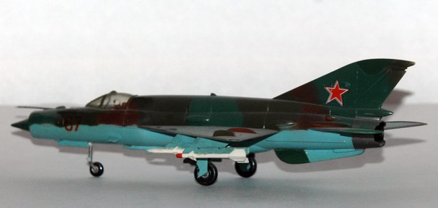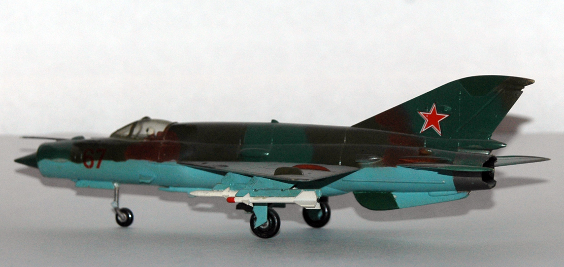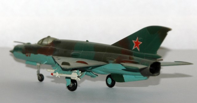 Этого Мига я собирал в 1989 году. Это была наиболее доступная модель Миг-21 в 72-м масштабе на тот момент. По мимо него, на нашем рынке гулял еще КП-шный Миг-21мф (1/72) и Пластикартовский Миг-21ф (1/100). По тем временам этот набор был весьма неплохой моделью.