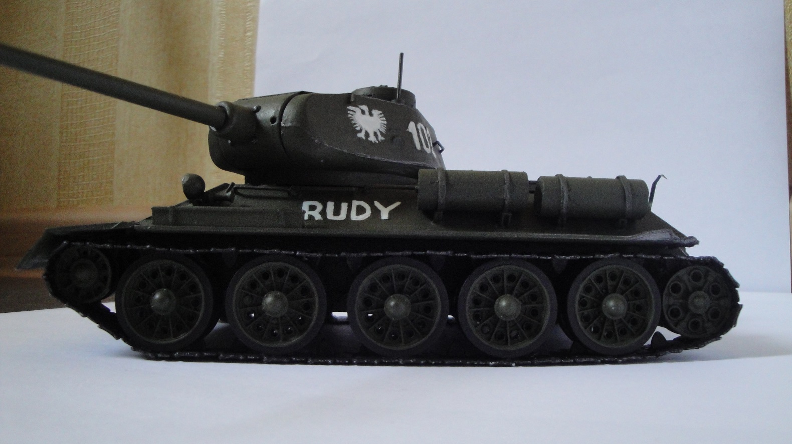 Здравствуйте! Хочу представить вам свою первую модель. Подтолкнуло на создание модели фильм "Четыре танкиста и собака", да и сам танк мне очень нравиться своими формами.Но посмотрев фильм я решил сделать изменения в своей модели, а именно :
