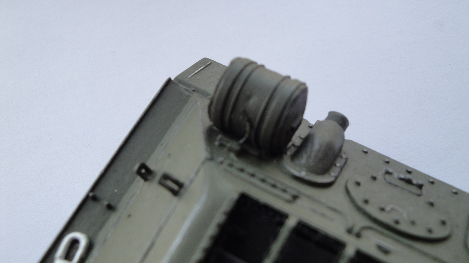 вообще не хватает аккуратности. патрубки надо было высверлить, окраска толстым слоем, куда то пропали заглушки пистолетных портов на башне, трос алюминиевый..