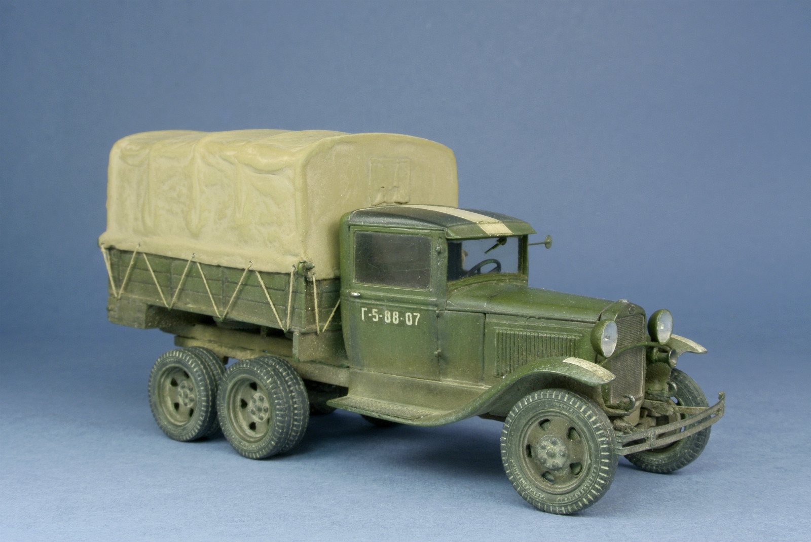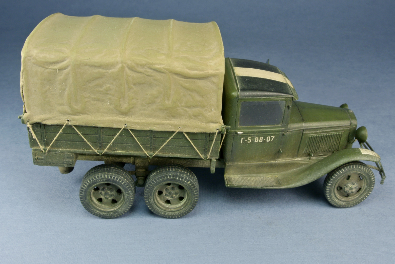 Здравствуйте уважаемые коллеги. Изначально сборка этой модели планировалась из коробочной, с добавлением фототравления и смоляных колёс HAULER , но в процессе постройки появилось желание изготовить самодельный тент и его крепление, что и было сделано впоследствии. Так же изготовил "остекление" фар, проводку к ним и сигналу, изготовил "зеркало" заднего вида из блестящей плёнки, доработал передние крылья придав им меньшую толщину и правильную форму. Снизу проработал отверстие под двигатель, сделал поворачивающимися колёса. При вырезании остекления кабины( по линиям на прозрачной плёнке входящей в набор), "дверные" стёкла оказались меньше размером, пришлось изготавливать заново из подходящего материала. Собираемость модели на четвёрочку, так же нужно учитывать хрупкость пластика, который требует аккуратности при отделении деталей от литников и последующей обработке. В конце работы, добавил( на мой взгляд) небольшую изюминку, в виде висячего ведра изготовленного из жести. Обзор отливок набора и дополнений к нему, можно посмотреть на моей страничке в обзорах. Модель изготовлена на заказ.