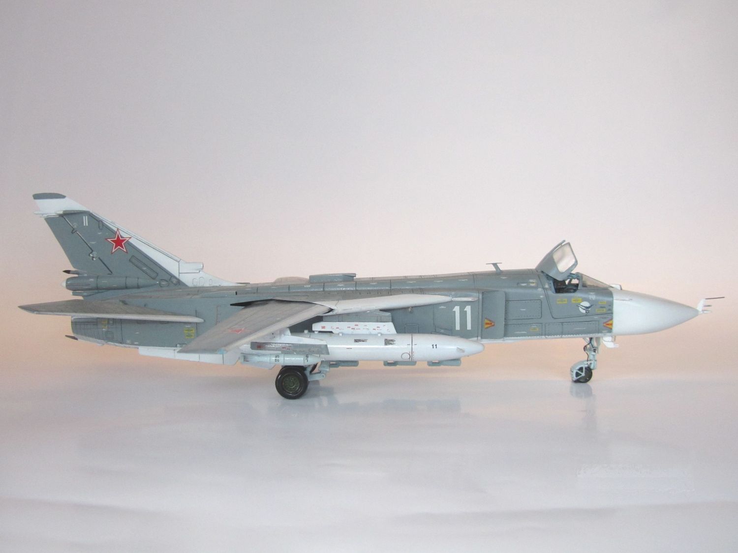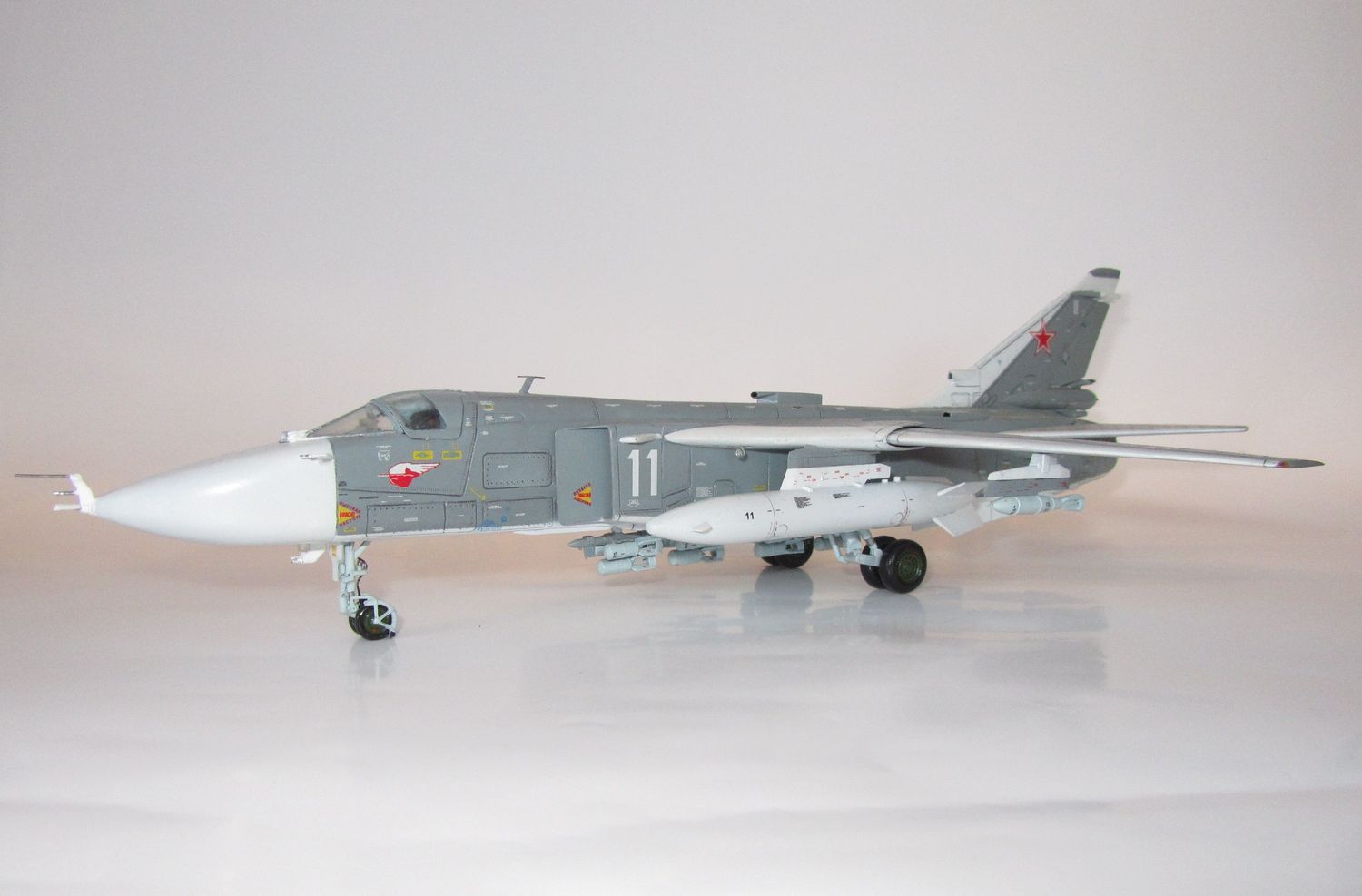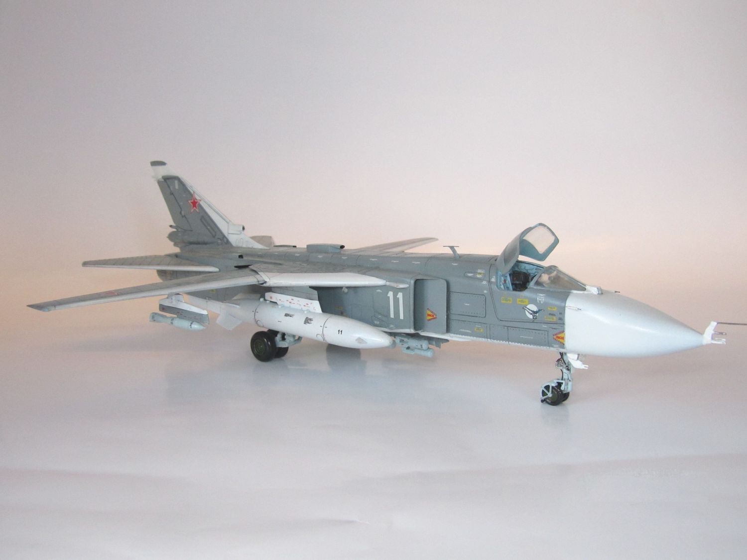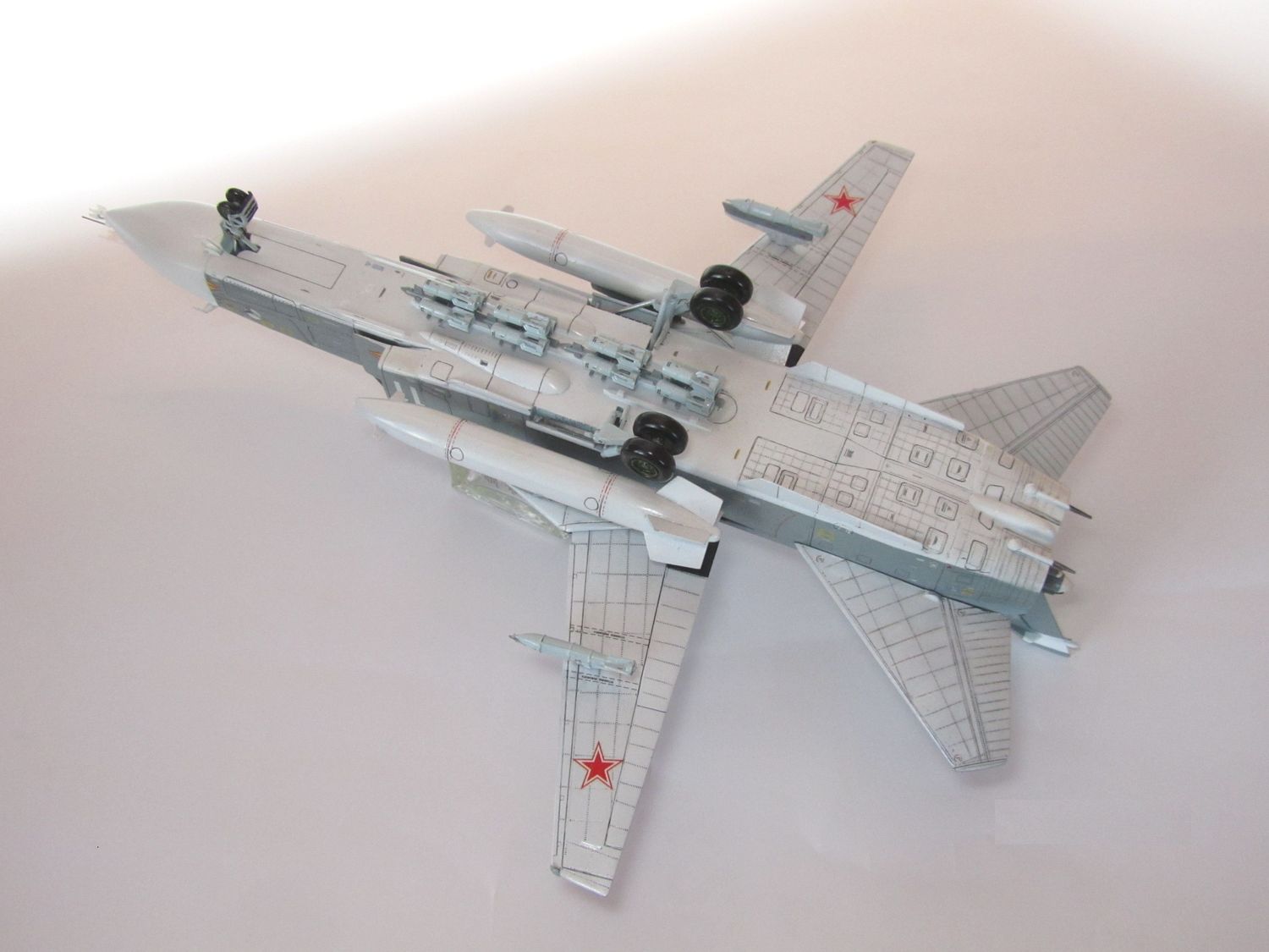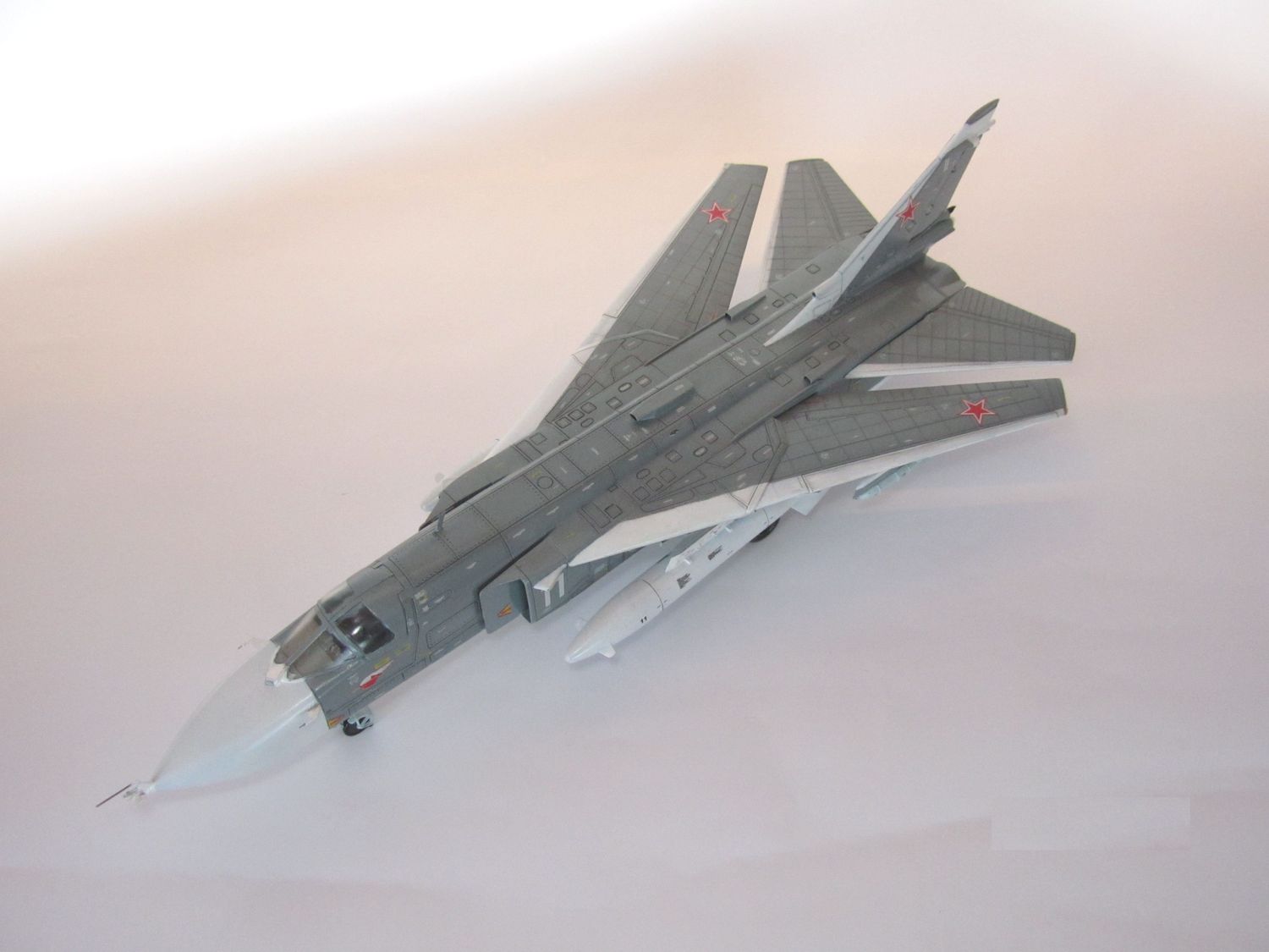 Хороший СУ-24 получился. По мат части я не силен, но выглядит убедительно. Понравилась расшивка, клепка, количество технички.