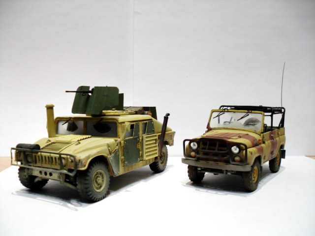 броню делать не стал принципиально, чтоб каркасик было видно, а это уазики армии Ирака) если не ошибаюсь 2004 год