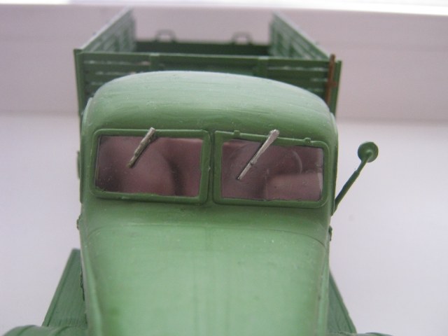 Что можно посоветовать автору? Не ставить пластиковые дубовые отливки дворников - только паяные из гитарных струн, пластик немасштабен. Тщательно до покраски следить за облоем, удаляя его полностью, включая шины! На капоте ужасная неровность, прекрасно переданная, увы, объективом фотокамеры. Смывка и не ночевала рядом, хотя она проста, как грабли - крышечка от кефира, полкапли сиены жженой от Невской палитры и две капли уайт-спирита... И ватная палочка...
