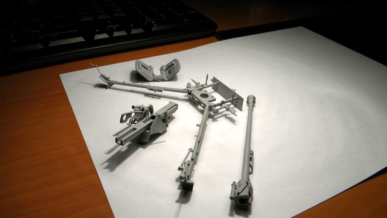 И тут, погожим деньком, прогуливаясь по магазинчику я заметил малюсенькую пушечку от отечественного производителя. Идеальный набор выходного дня для преодоления творческого кризиса, подумал я. Но придя домой и изучив кусочки пластмассы из которых мне предстояло собирать грозное орудие я был немного опечален - они были плохие! Ещё более я был опечален, когда полез в интернет смотреть фотографии этой немецкой штуки. Как я понял, у производителя небыло денег на интернет и он делал модель по описанию взятому из художественной литературы и воспоминаниям ветеранов, фотографий он скорее всего не видел.