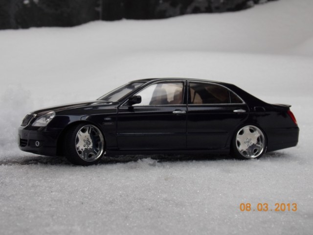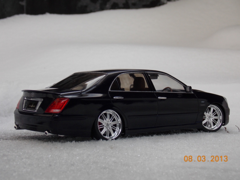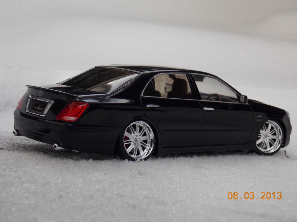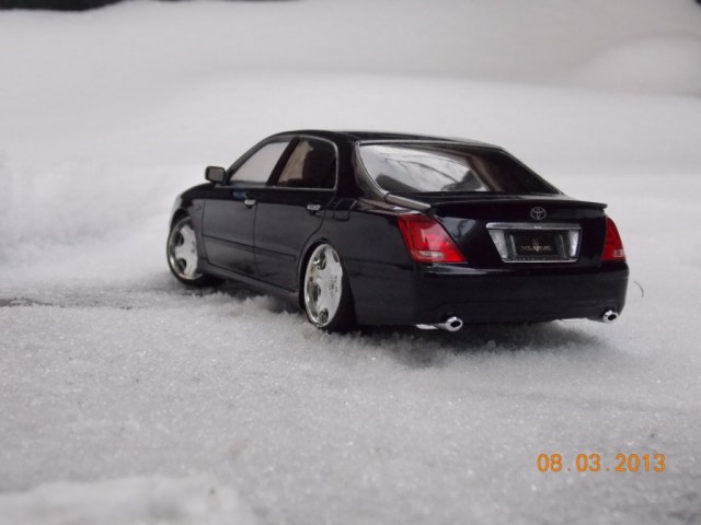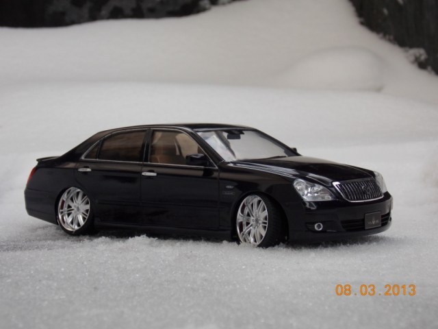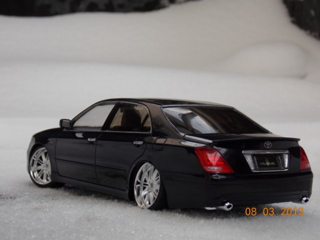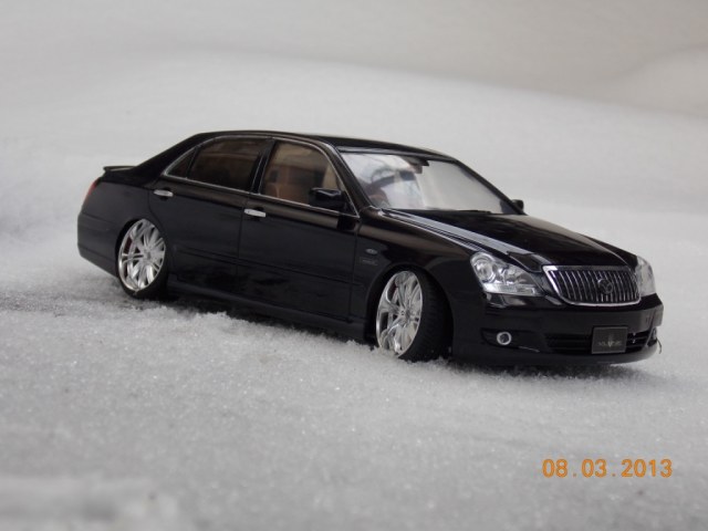 Здравствуйте, выставляю свою крайнюю модель. На этот раз Toyota Crown Magesta от Aoshima. Кит довольно неплохой, но качество немного похуже чем у тамии. Из набора осталось много деталей: задний бампер, пороги, противотуманки, насадки на глушителя. Модель красилась тамийной краской TS-55, в сборке прошлось подгонять парочку деталей. Салон правда не аккуратно собрал) Ну вообщем-то и все. Смотрите и судите.