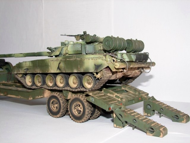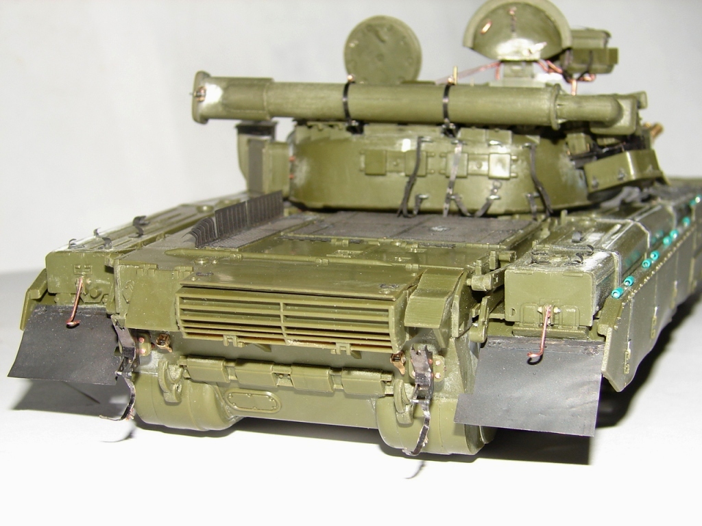 Ну-с поехали. Плохо что не сделали нормальные передние крылья, родные ну совсем ни на что не похожи. Луна высоковато задрана. Туча с левого борта стоит немного в раскоряку. При таком объеме доработок так-же следовало-бы сделать- подогрев и слив маслобака, нормальный туннель перед ночным прицелом, поменять буксирные крюки. Блок автоматов(на ЗПУ) смещен в право, должен стоять левее. На резинотканевых заглушках(труба ОПВТ и пулеметные коробки) не могут быть "сколы до металла". Со сколами вообще по моему малость переборщили. Бортовые экраны должны быть вровень с передними крыльями, по нижнему срезу ( но тут могу ошибаться, на модели плохо видно). Про остальное вроде все сказали.