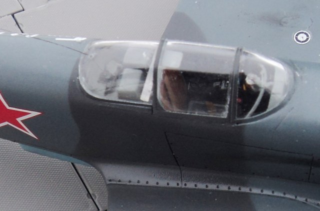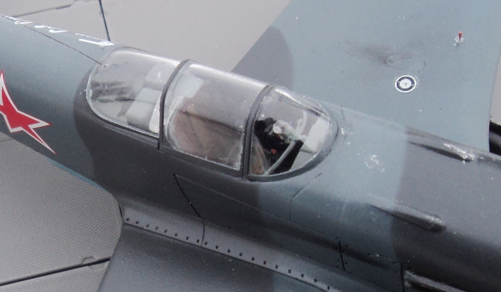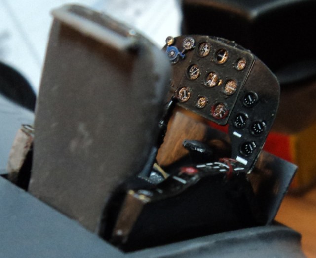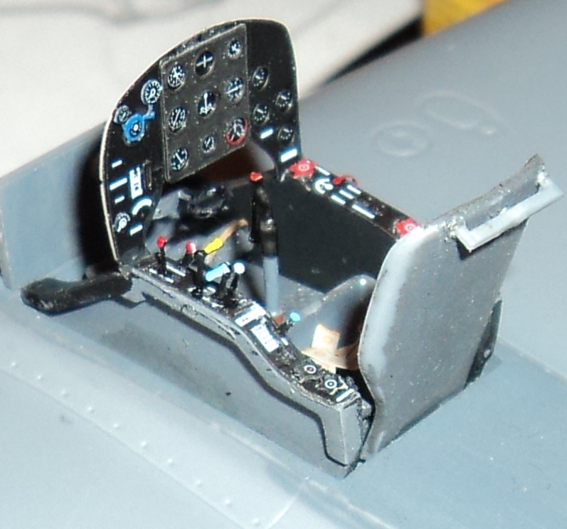 Была собрана и окрашена кабина. на полу и на кресле были имитированы потертости. Впоследствии кресло пилота, полка с радиооборудованием и боковинки были заменены на смоляные от Неомега, а приборная панель получила необходимый перегиб и рычаг выпуска шасси. Кабину планировалось сделать открытой, но сдвижная часть фонаря была безнадежно утеряна и кабину пришлось делать закрытой.