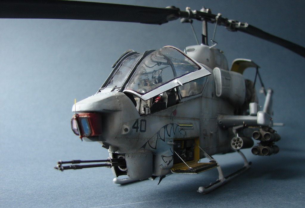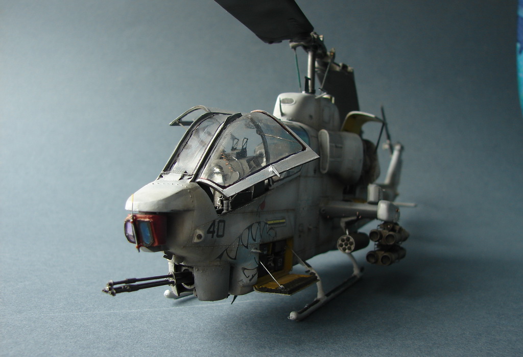 Сама модель-редкостные дрова.Пришлось переделывать многое,а так же делать некоторые части с нуля.Самый большой косяк длина носовой части((Пришлось распиливать фюзеляж и вставлять почти 5 мм вставку.Лыжи тоже почти сделанны заново.Пушка Гатлинга из иголок 20ти куб шприца.Автомат перекоса на втулке пришлось лепить из миллипута. Набор травления позволяет сделать многие вещи на модели более аутентичными.Но мороки с ними(((Например :один ПТУРС БГМ Тоу состоит из более чем 60 деталей(!)и его изготовление заняло почти часов восемь))Пытался исправить форму носа,чтоб была похожа на НТС (в комплекте была простая Кобра)В прицельно обзорной станции имитировал объектив .